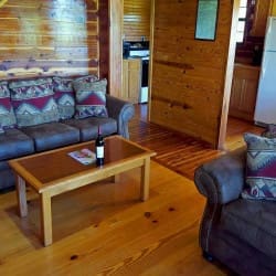 This rustic yet modern cabin boasts a spacious layout with 1 queen bed in the master bedroom and 2 full beds in the loft, comfortably accommodating up to six guests. After a day of outdoor adventures, relax in the cozy living room equipped with a flat-screen TV or gather around the BBQ grills for a delicious meal. The outdoor campfire is the perfect setting for stargazing and sharing stories in the night sky.