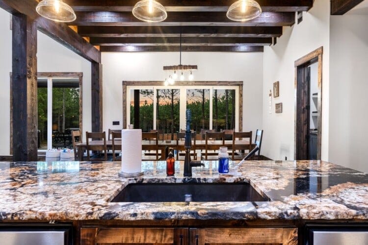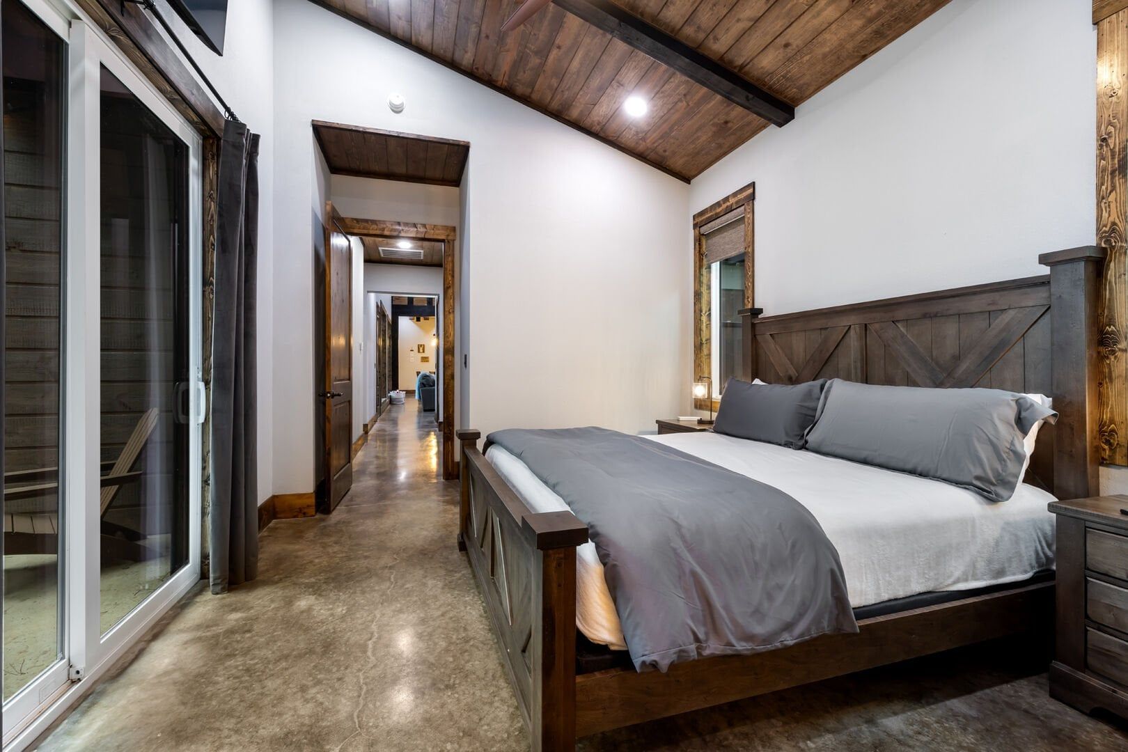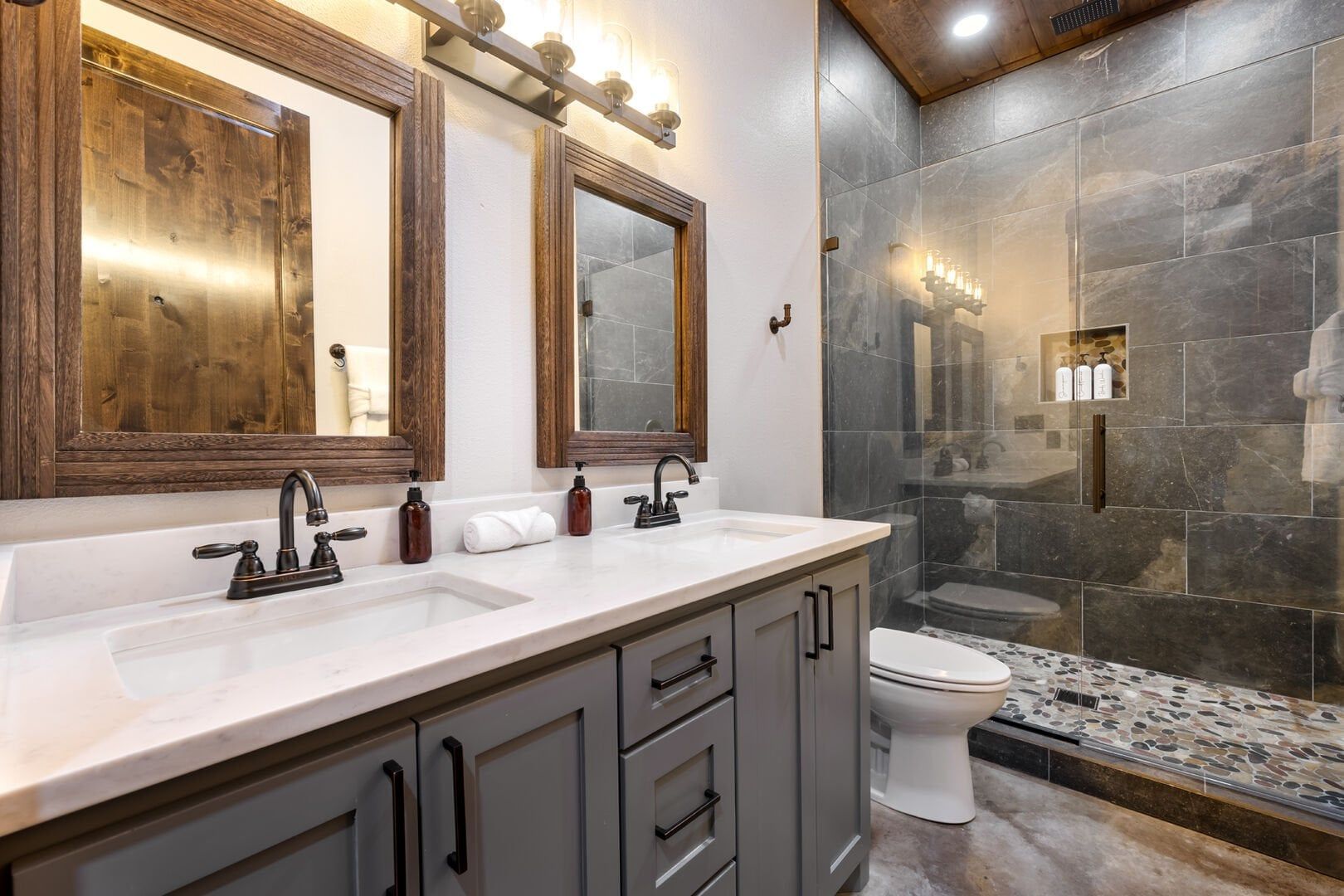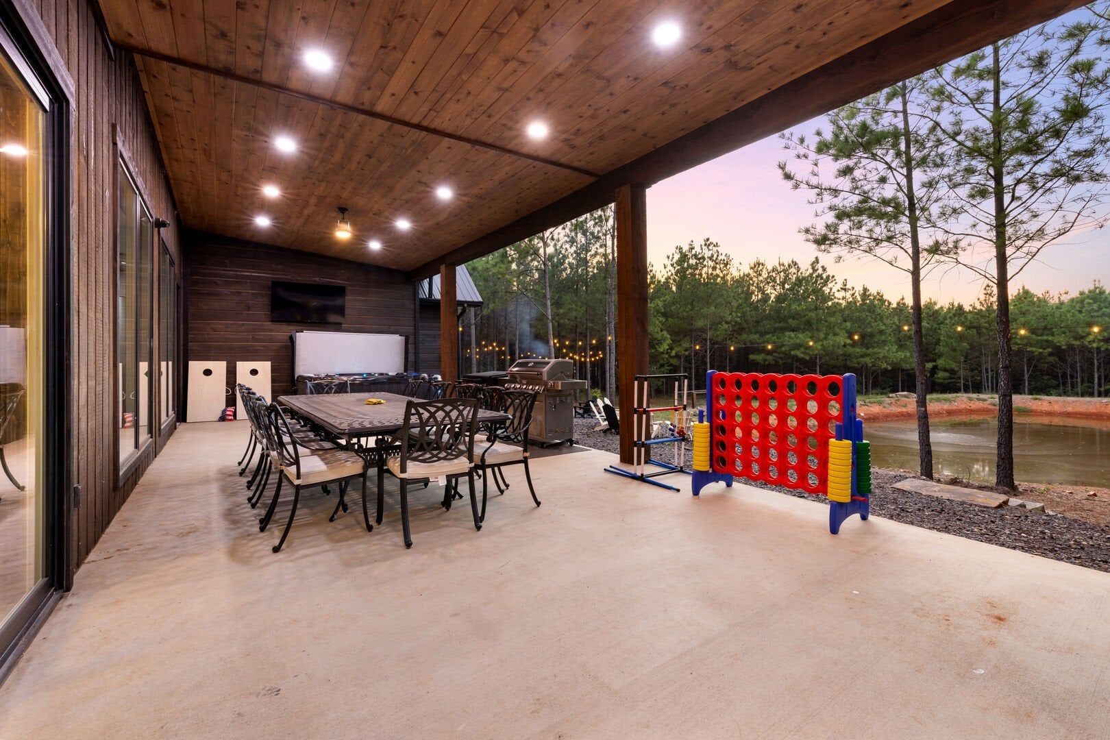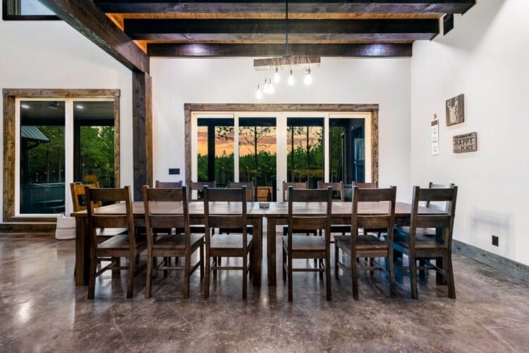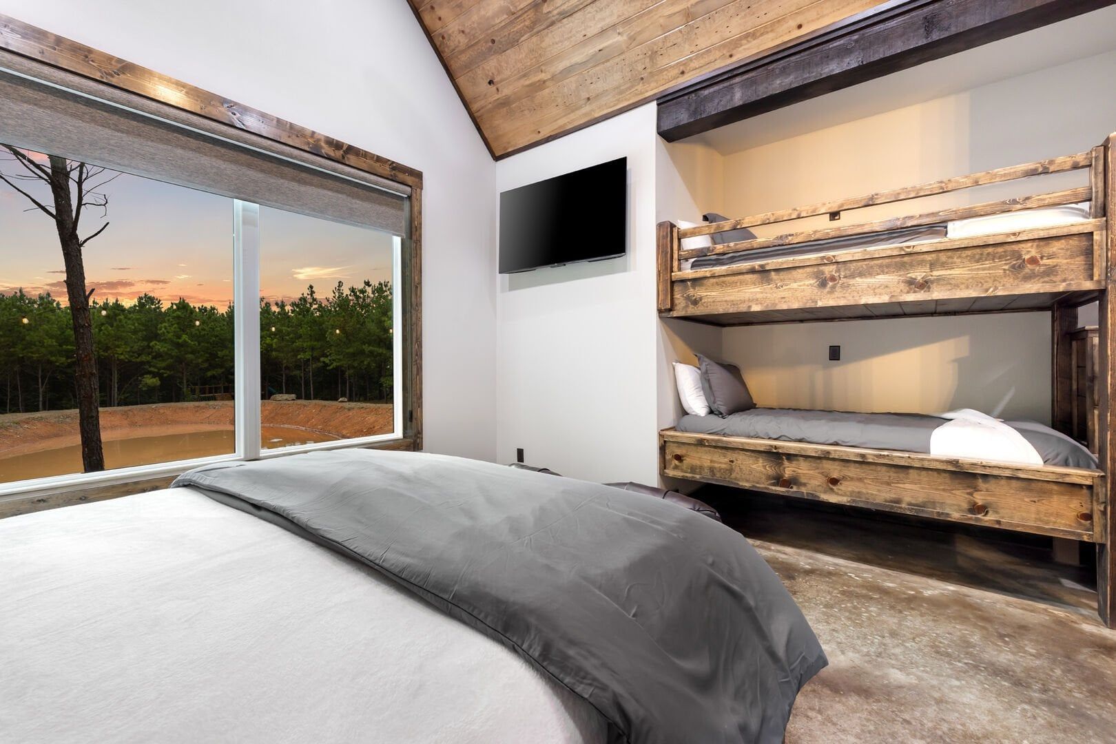 Luxury cabin with indoor slide, hot tub, arcade, fire pits, 5 king suites, and huge bunk room