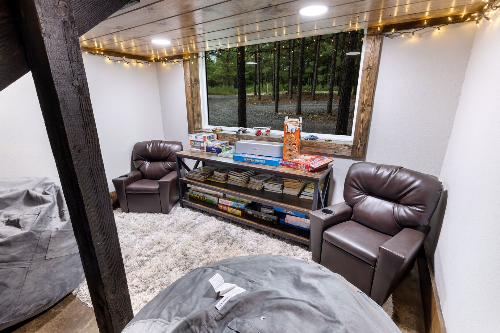 We had a wonderful stay with extended family! There was something for everyone and plenty of space for everyone to spread out. Game room was a big hit for both the kids and the adults. The kitchen was definitely stocked to perfection. And we appreciated they supplied trash bags, dishwasher tabs, laundry soap, etc…. We loved being in the woods but also just a quick drive into town. Host was very helpful with a fireplace issue we had and had us going within an hour! Would definitely recommend this cabin and look forward to staying again ourselves!