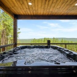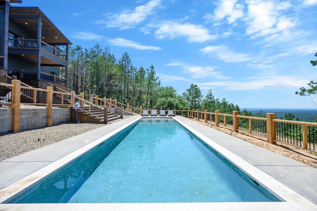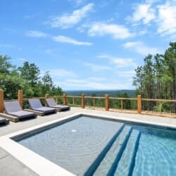 Swimming with the Stars offers one of the most unforgettable experiences in Broken Bow. This beautiful luxury cabin features a private swimming pool with stunning views of the mountains. Designed with comfort, fun, and space, this cabin sleeps up to thirty-five guests in beds.