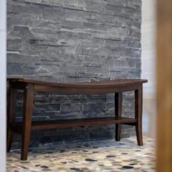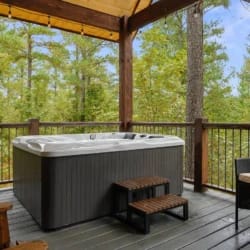 Outside, The Adirondack truly shines. The elevated deck offers breathtaking views and a private retreat where guests can relax in the brand-new hot tub or lounge by the wood-burning outdoor fireplace. Comfortable seating and a propane grill make enjoying meals at Al Fresco easy. Whether sipping coffee in the morning or watching the sunset in the evening, the outdoor space invites guests to soak in the natural beauty that surrounds the cabin.
