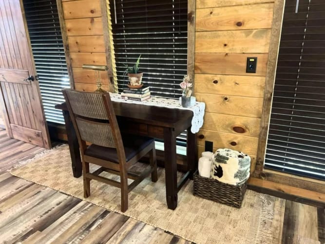 Designed conveniently, The Adirondack is also an excellent choice for those combining work and leisure. A dedicated workstation and reliable Wi-Fi ensure that remote tasks can be completed efficiently, leaving plenty of time to unwind and explore. The cabin even provides accurate local weather forecasts to help guests plan outdoor activities, from hiking to stargazing.