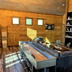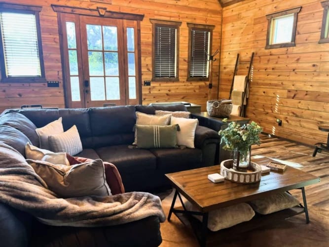 The Adirondack comfortably accommodates two adults and up to two children, making it a perfect choice for honeymooners, couples, or young families seeking a serene getaway. Owners Travis and Sara have poured their passion into creating a space that feels like a home away from home, ensuring guests leave with cherished memories and a longing to return.