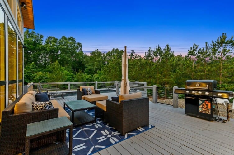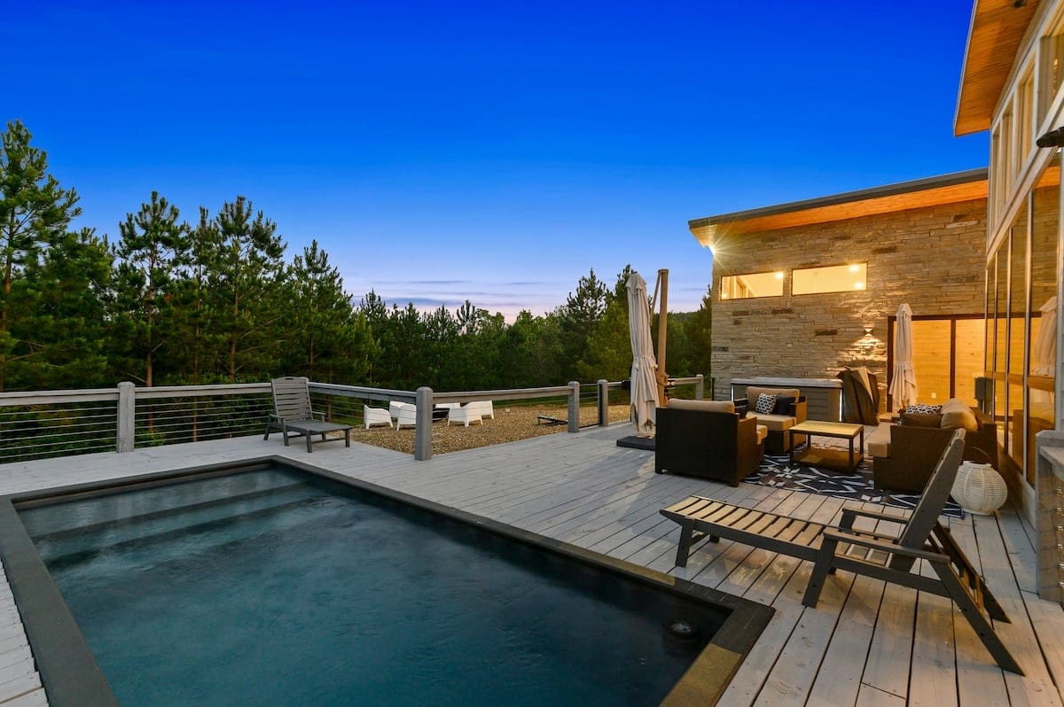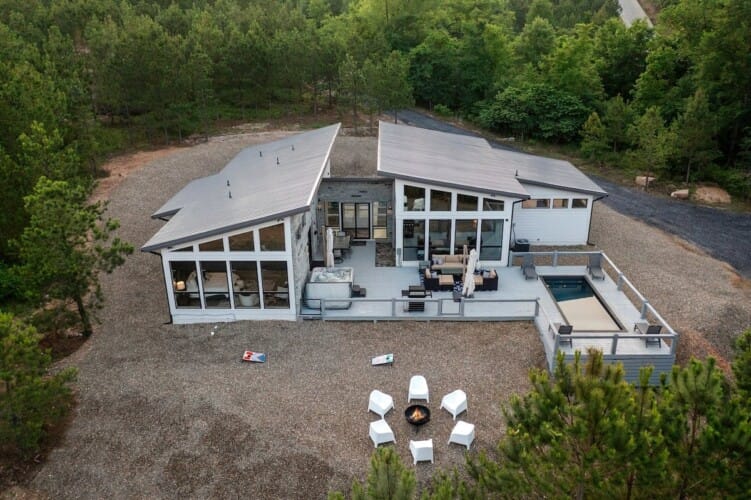 The Hive offers the perfect setting for a memorable girls’ getaway or bachelorette party in the peaceful pine forests of Broken Bow. This beautifully styled modern Broken Bow cabin with pool blends bold design with cozy charm and sets the stage for rest, celebration, and connection. Nestled among towering trees with sweeping views of the surrounding mountains, The Hive includes a private pool, hot tub, and multiple indoor and outdoor gathering spaces to keep every moment relaxing and fun. With room for up to fourteen guests, this cabin delivers the comfort of home and the feeling of a true escape.