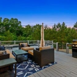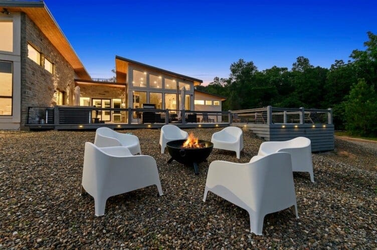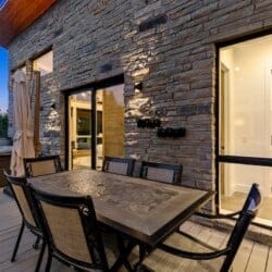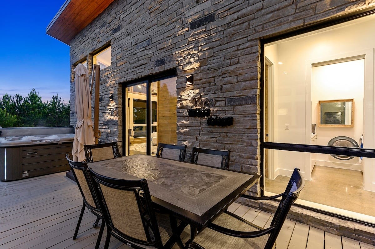 The outdoor space at The Hive is where the property truly shines. The private pool, available seasonally from May through October, allows guests to cool off under the sun with mountain views in the distance. The hot tub provides a relaxing spot to soak and unwind on cooler evenings. A gas grill and outdoor dining area make preparing and enjoying meals outside easy. The fire pit, surrounded by comfortable chairs, creates a perfect space for stargazing or sharing stories as the night settles in. A front courtyard offers even more seating and a quiet corner to sip a drink or enjoy the scenery.