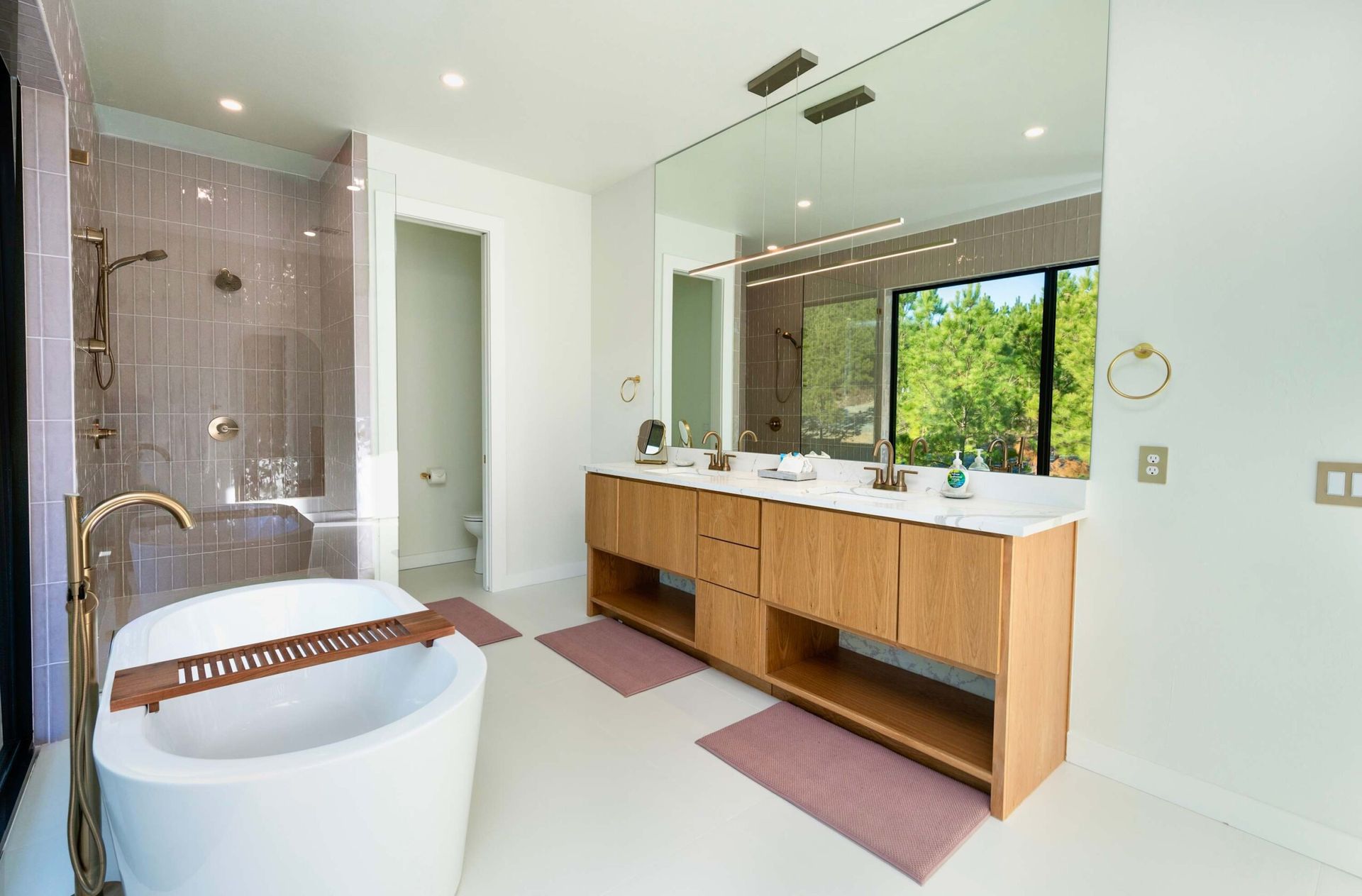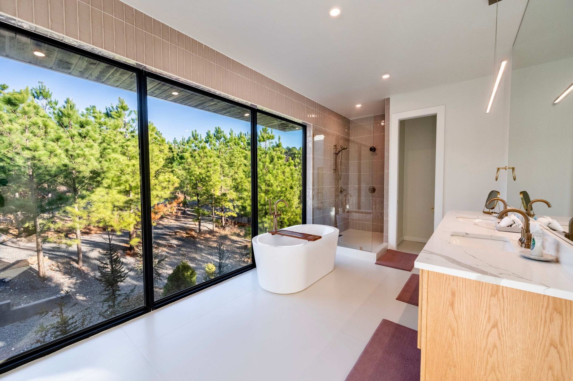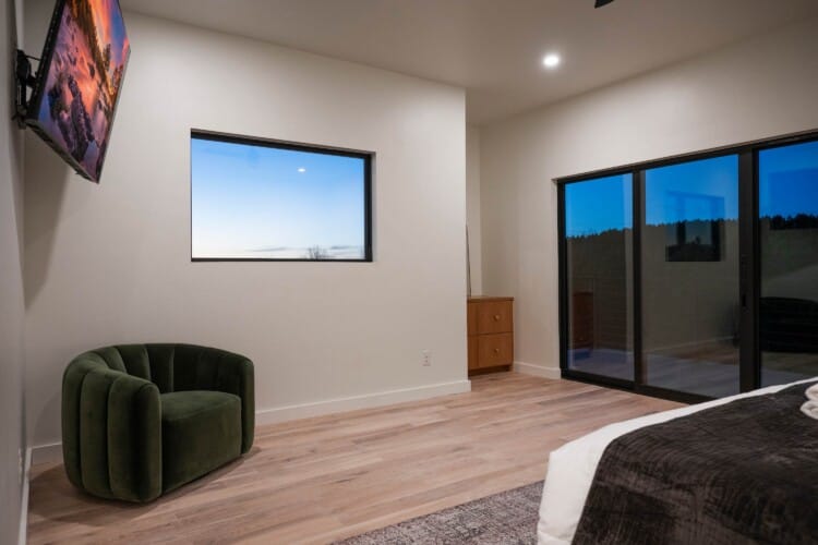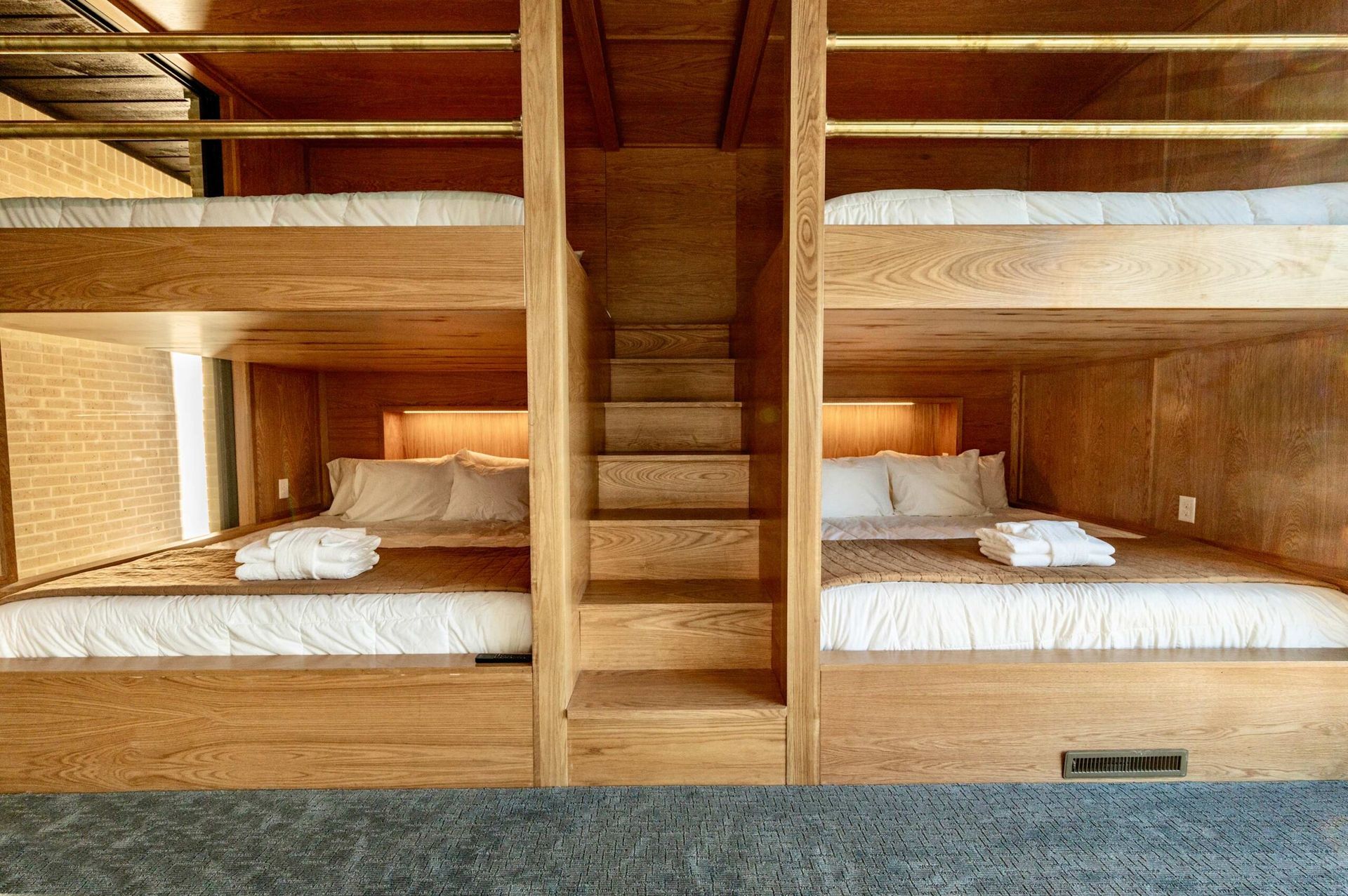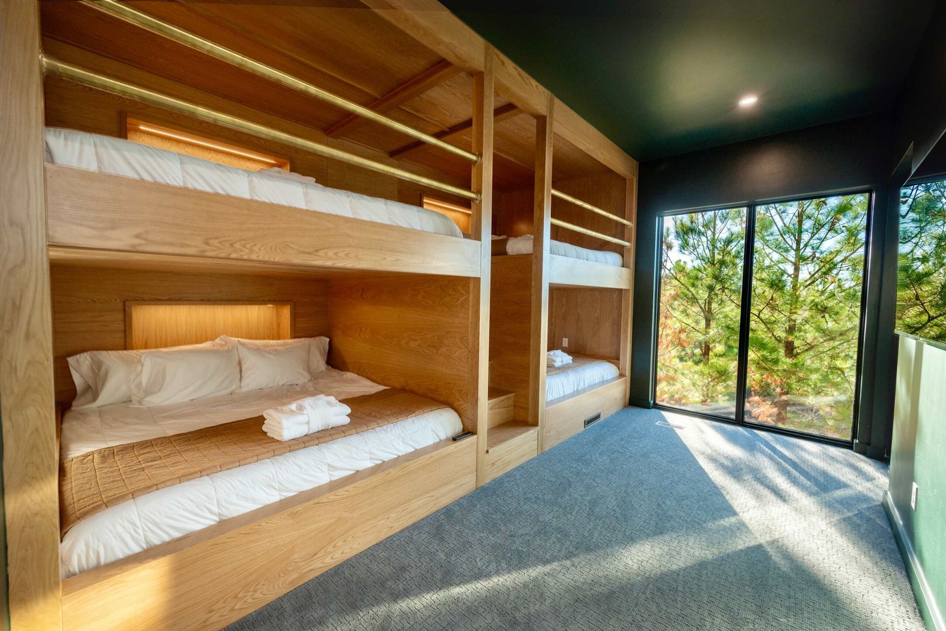 The Jade isn’t just about comfort—it’s about bringing people together. There’s plenty of space for everyone, with soft couches and a dining area that’s perfect for sharing stories over dinner. The Jade also has a game room that kids and adults will love. The pool table and ping pong table are always ready for friendly matches, and the view out the windows makes it even better. Even on rainy days, there’s never a dull moment at The Jade. If you need some quiet time, you’ll find it easy to relax in any of the five bedrooms. The Jade features a master suite with a king-size bed and a private bathroom that feels like your own personal spa. For families or groups with kids, the bunk room is a favorite, offering four queen beds and easy stairs to the upper bunks, making sleepovers fun and comfortable. Upstairs, The Jade continues to impress with more king bedrooms, each with its bathroom and balcony. These spaces are private and peaceful, perfect for sipping coffee in the morning or enjoying the mountain air before bed. The bathrooms at The Jade feature soaking tubs and rainfall showers, ensuring every guest enjoys a little luxury during their stay.