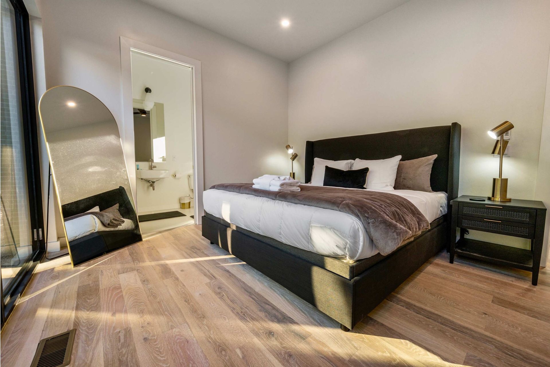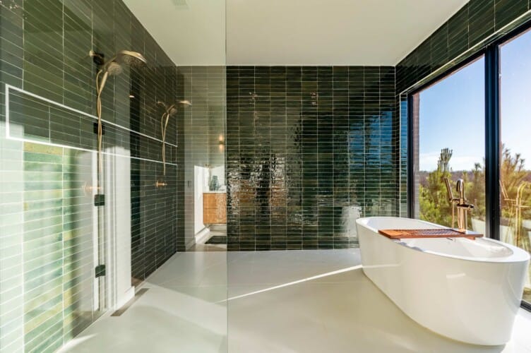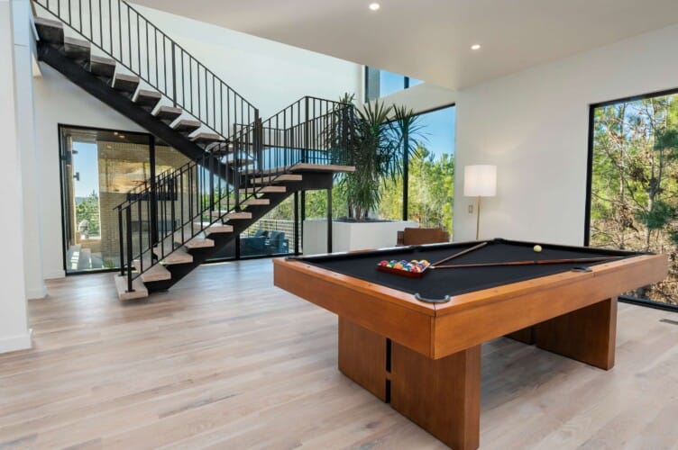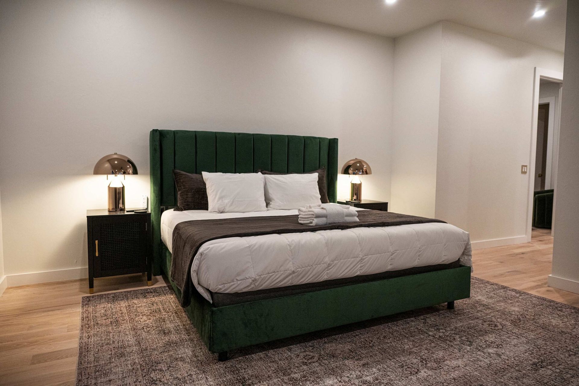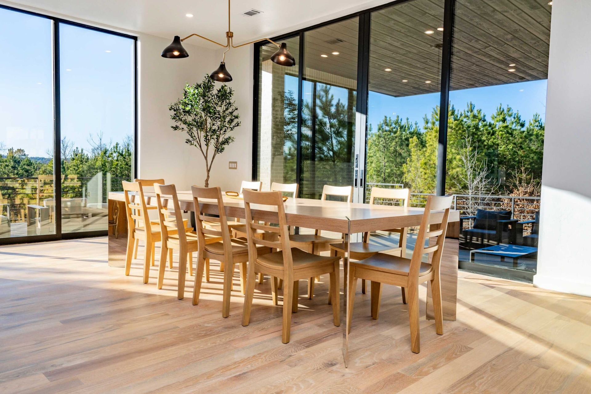 The Jade isn’t just about comfort—it’s about bringing people together. There’s plenty of space for everyone, with soft couches and a dining area that’s perfect for sharing stories over dinner. The Jade also has a game room that kids and adults will love. The pool table and ping pong table are always ready for friendly matches, and the view out the windows makes it even better. Even on rainy days, there’s never a dull moment at The Jade. If you need some quiet time, you’ll find it easy to relax in any of the five bedrooms. The Jade features a master suite with a king-size bed and a private bathroom that feels like your own personal spa. For families or groups with kids, the bunk room is a favorite, offering four queen beds and easy stairs to the upper bunks, making sleepovers fun and comfortable. Upstairs, The Jade continues to impress with more king bedrooms, each with its bathroom and balcony. These spaces are private and peaceful, perfect for sipping coffee in the morning or enjoying the mountain air before bed. The bathrooms at The Jade feature soaking tubs and rainfall showers, ensuring every guest enjoys a little luxury during their stay.