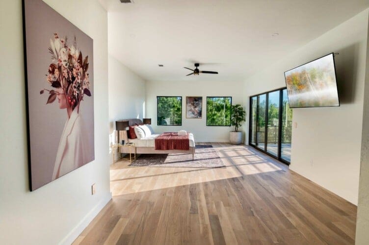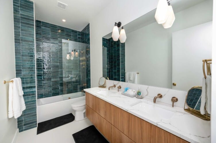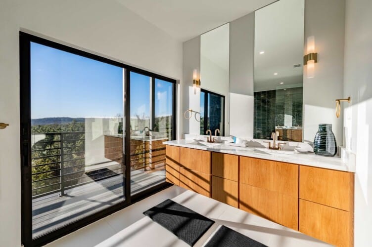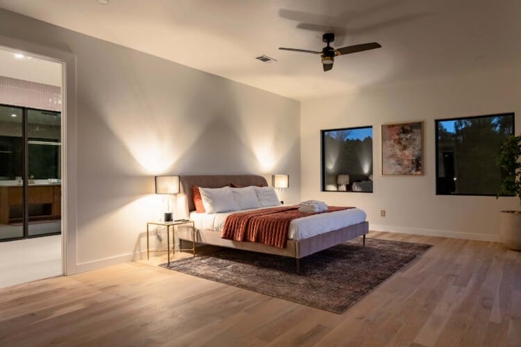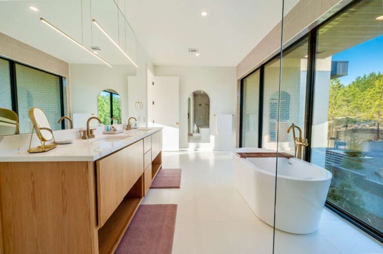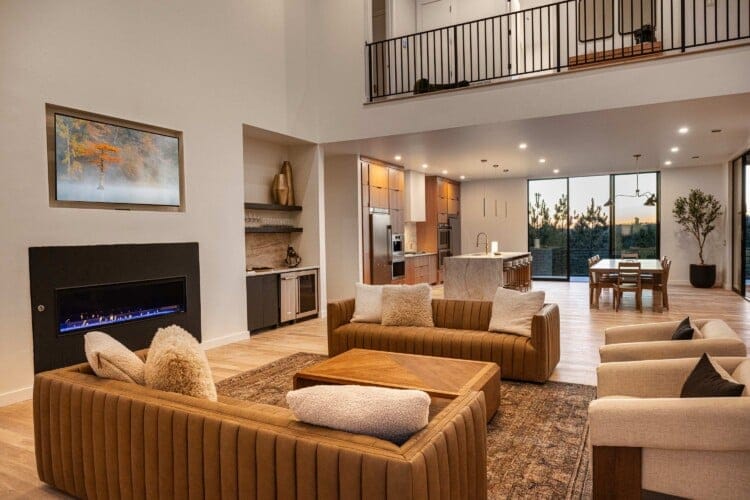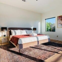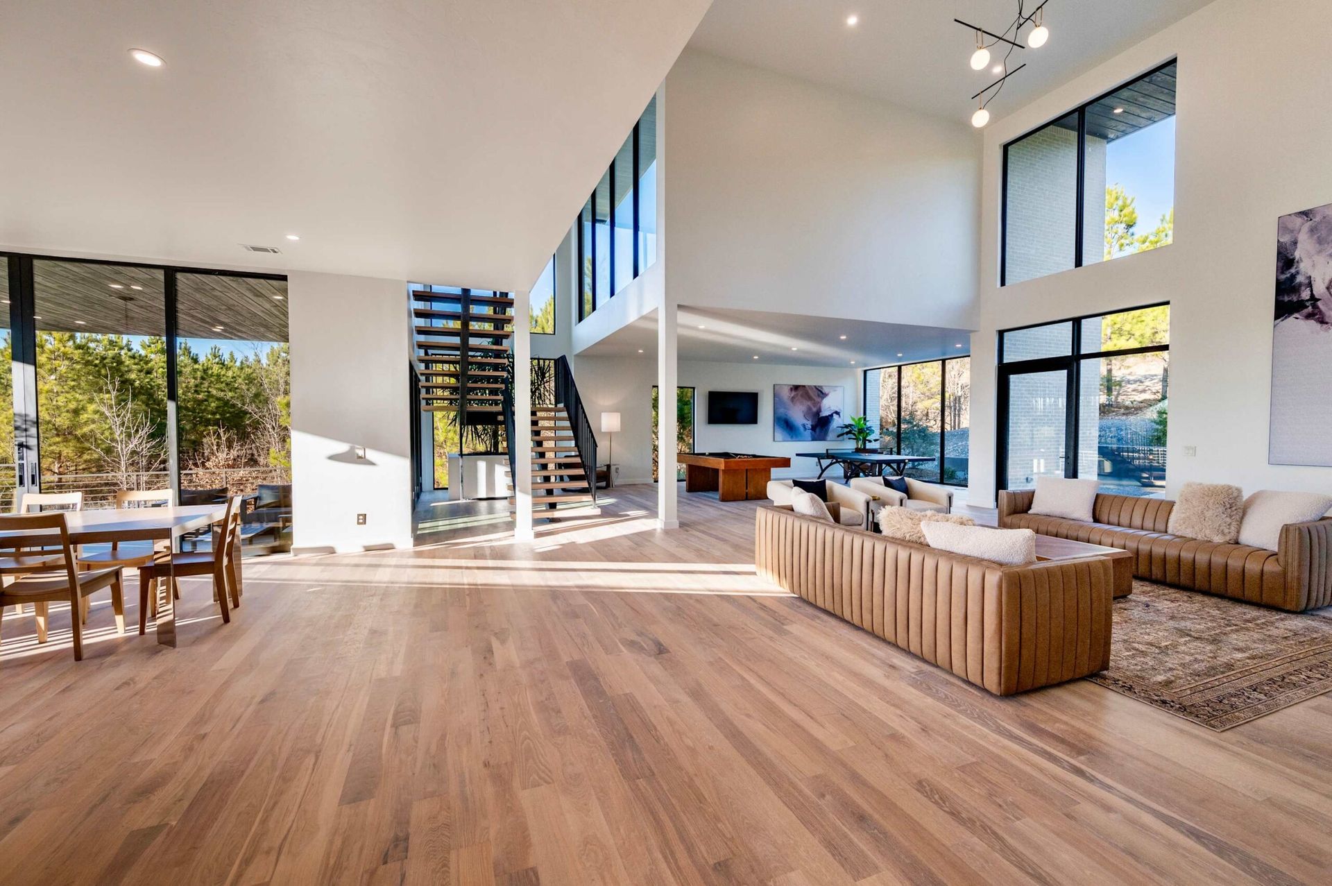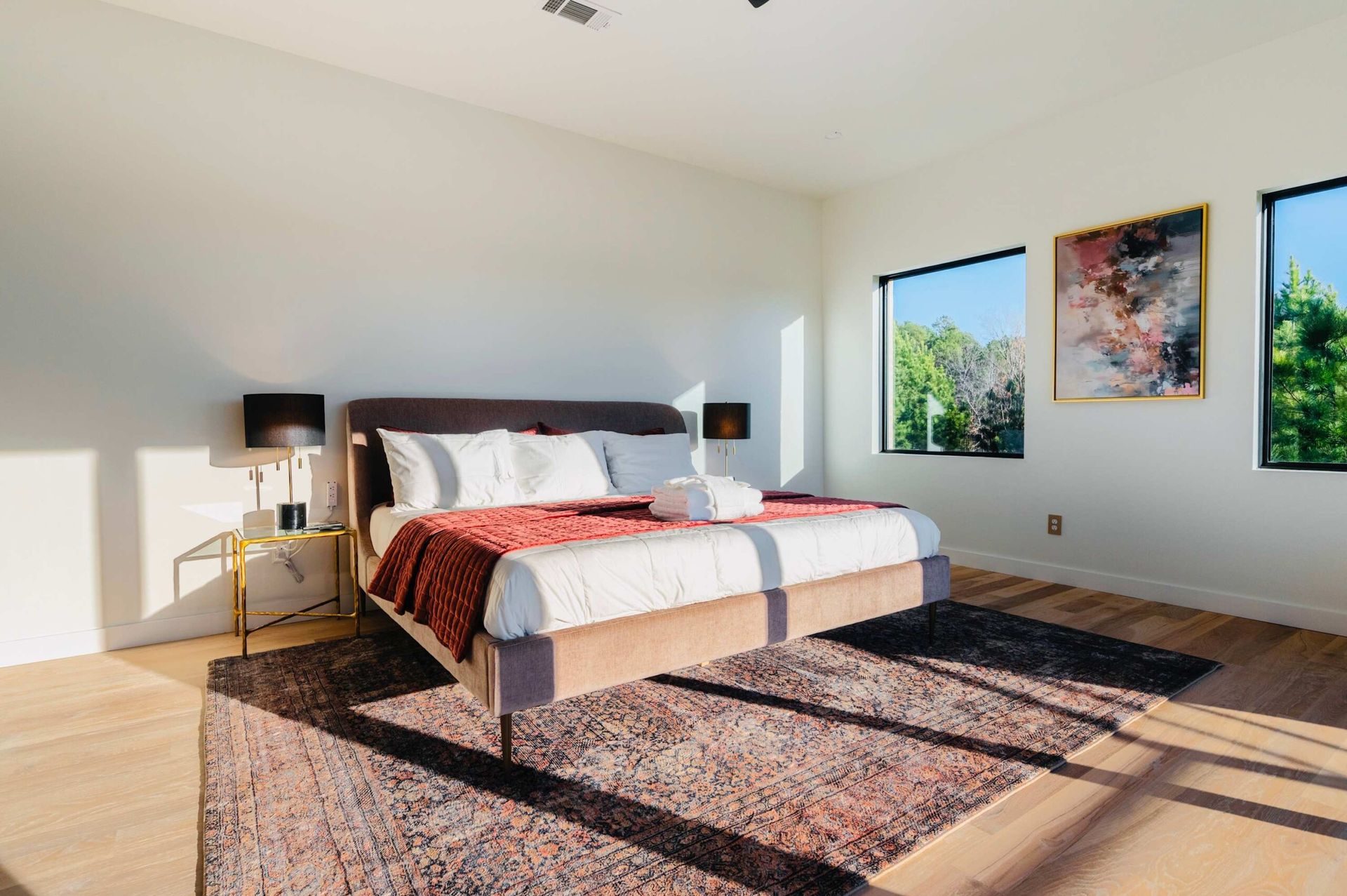 The Jade isn’t just about comfort—it’s about bringing people together. There’s plenty of space for everyone, with soft couches and a dining area that’s perfect for sharing stories over dinner. The Jade also has a game room that kids and adults will love. The pool table and ping pong table are always ready for friendly matches, and the view out the windows makes it even better. Even on rainy days, there’s never a dull moment at The Jade. If you need some quiet time, you’ll find it easy to relax in any of the five bedrooms. The Jade features a master suite with a king-size bed and a private bathroom that feels like your own personal spa. For families or groups with kids, the bunk room is a favorite, offering four queen beds and easy stairs to the upper bunks, making sleepovers fun and comfortable. Upstairs, The Jade continues to impress with more king bedrooms, each with its bathroom and balcony. These spaces are private and peaceful, perfect for sipping coffee in the morning or enjoying the mountain air before bed. The bathrooms at The Jade feature soaking tubs and rainfall showers, ensuring every guest enjoys a little luxury during their stay.