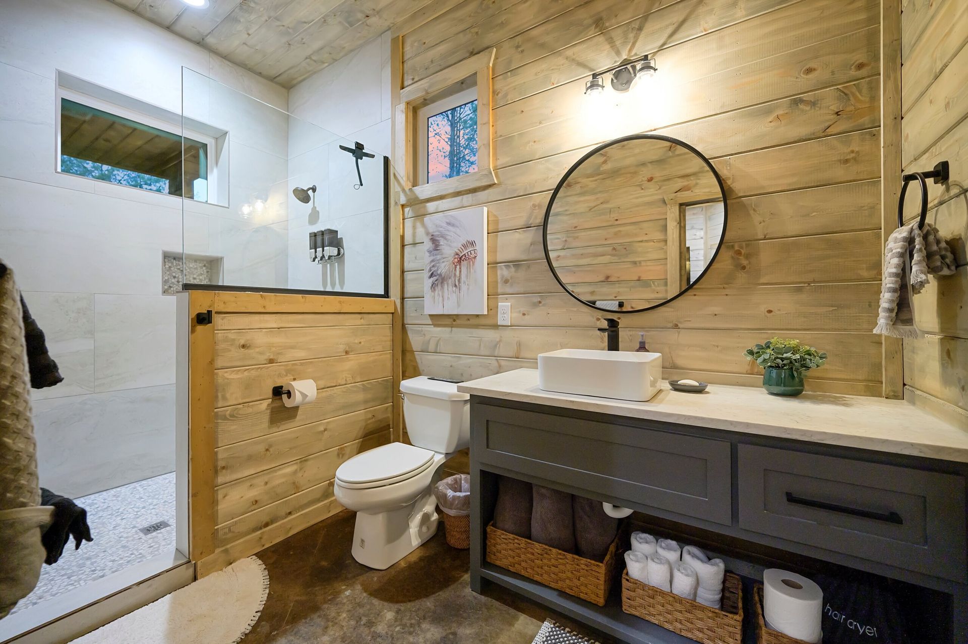 The Twisted Pine is a welcoming, family-friendly cabin nestled deep within the peaceful West Fork area of Hochatown. Surrounded by tall trees and natural quiet, The Twisted Pine was built for families and groups who want to enjoy both relaxation and play without sacrificing comfort. With three bedrooms, three and a half bathrooms, and ample space for up to eight guests, this modern-rustic retreat seamlessly combines cozy design with thoughtful amenities, making it an ideal cabin for slowing down, reconnecting, and enjoying the outdoors.