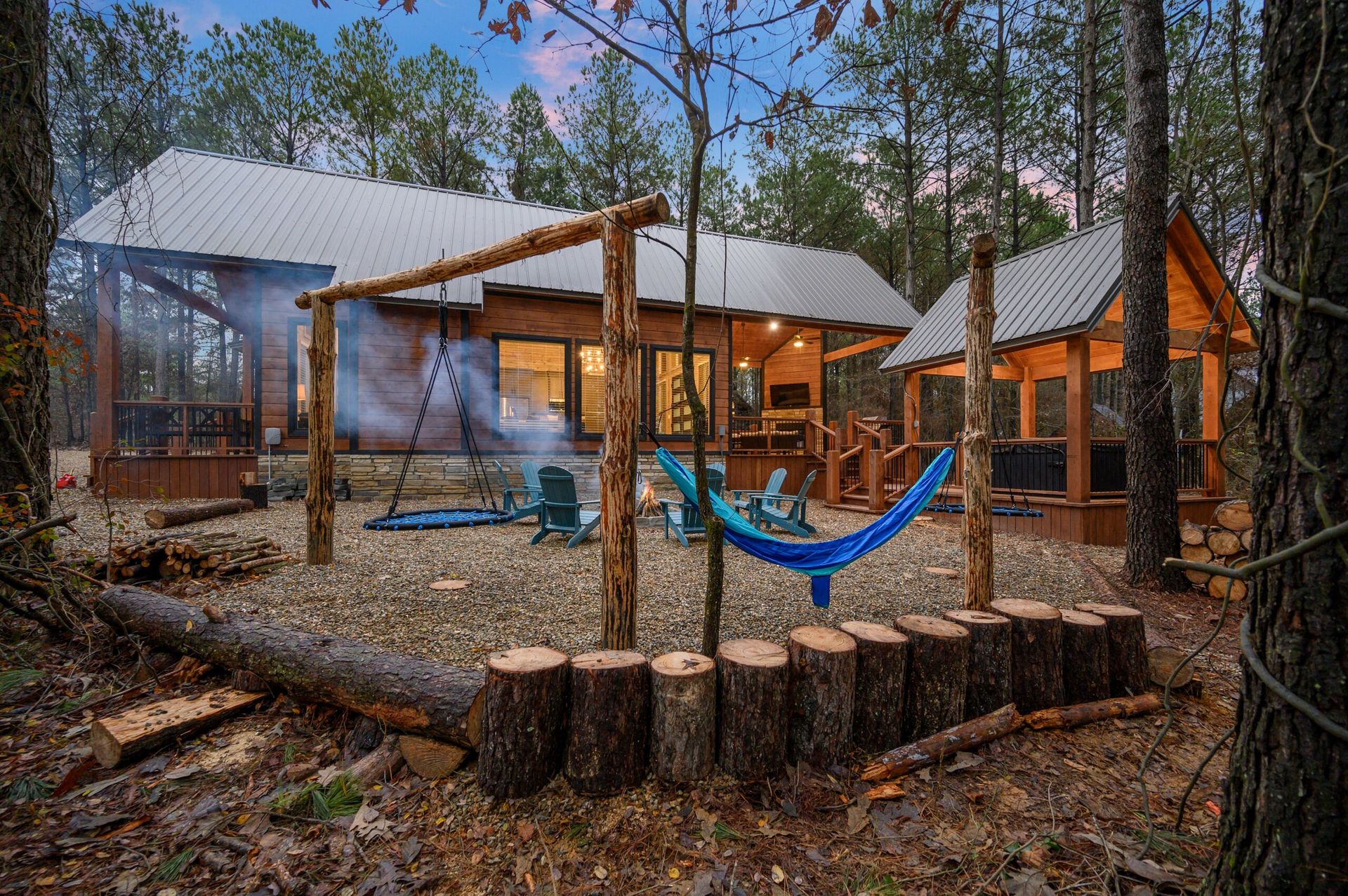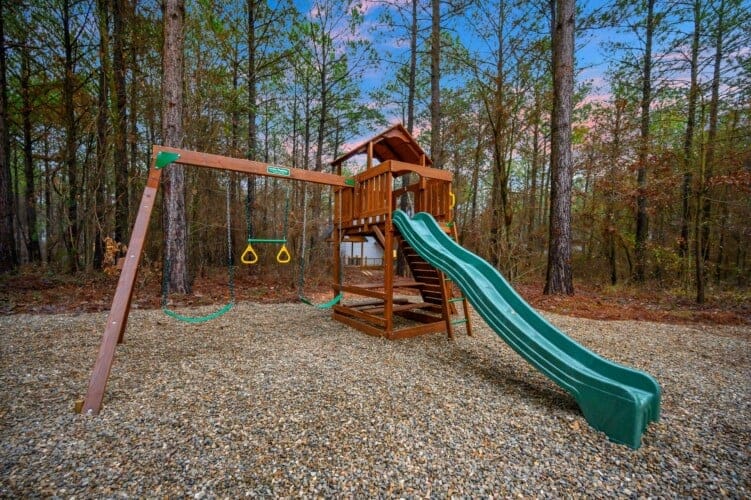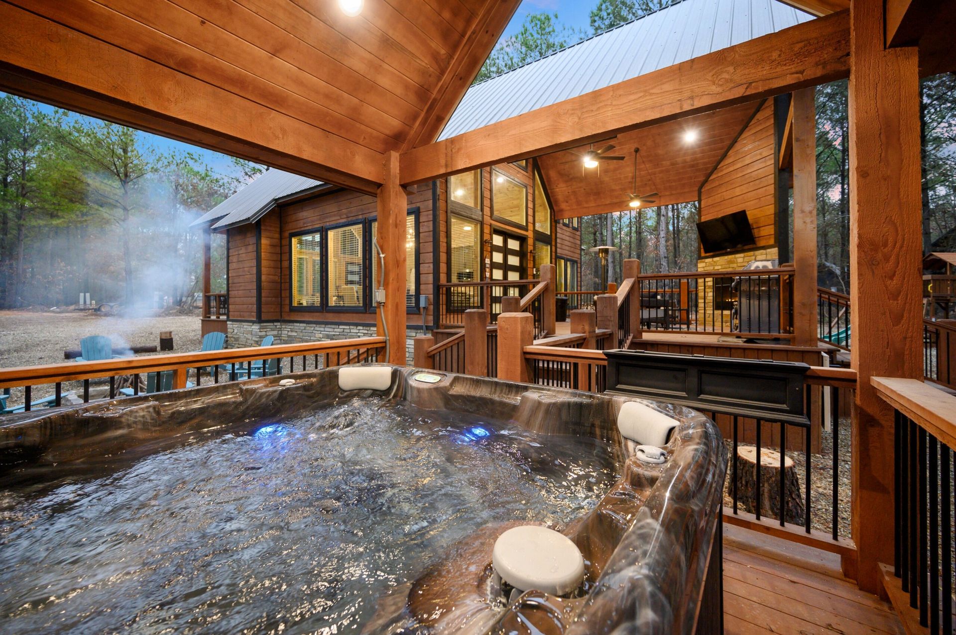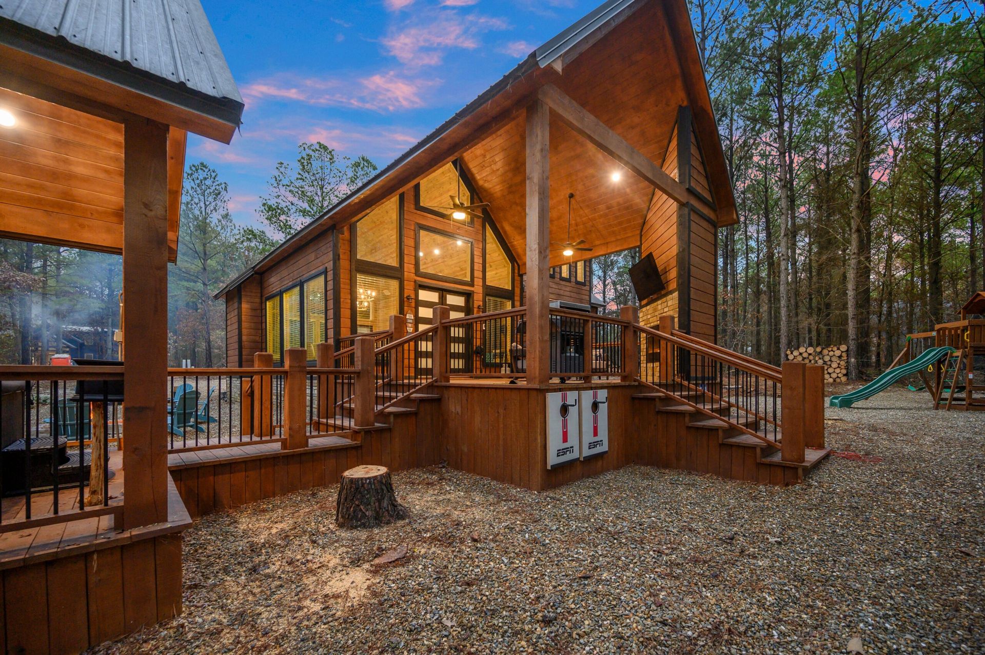 Family Cabin with Game Loft, Hot Tub, Fire Pit, Kids’ Playset & Outdoor Fireplace