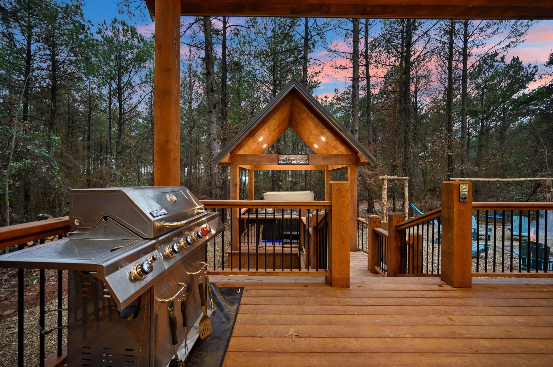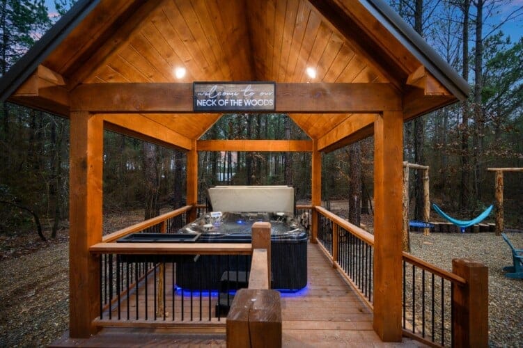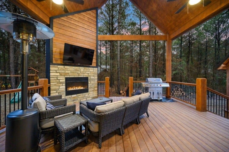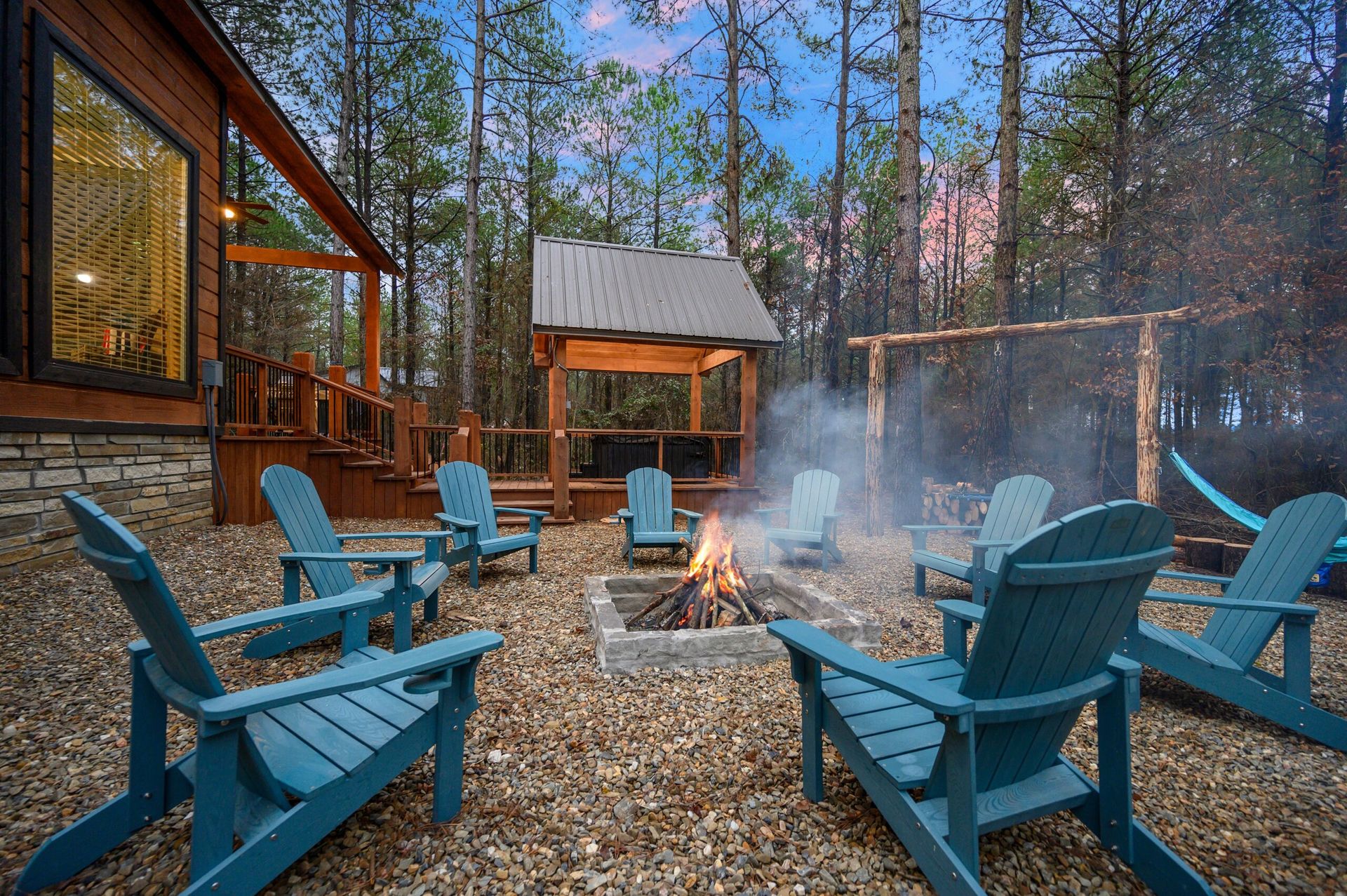 Family Cabin with Game Loft, Hot Tub, Fire Pit, Kids’ Playset & Outdoor Fireplace