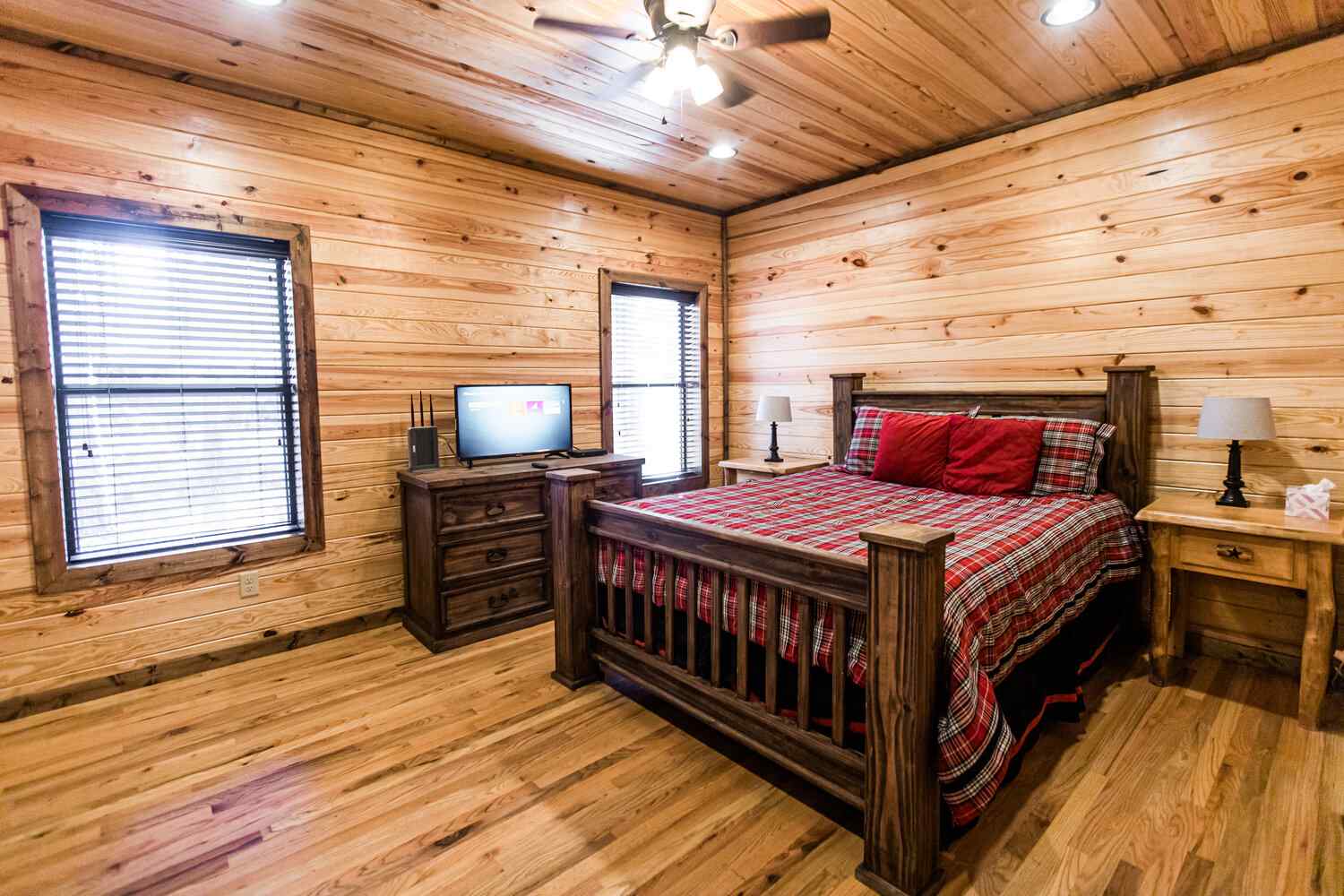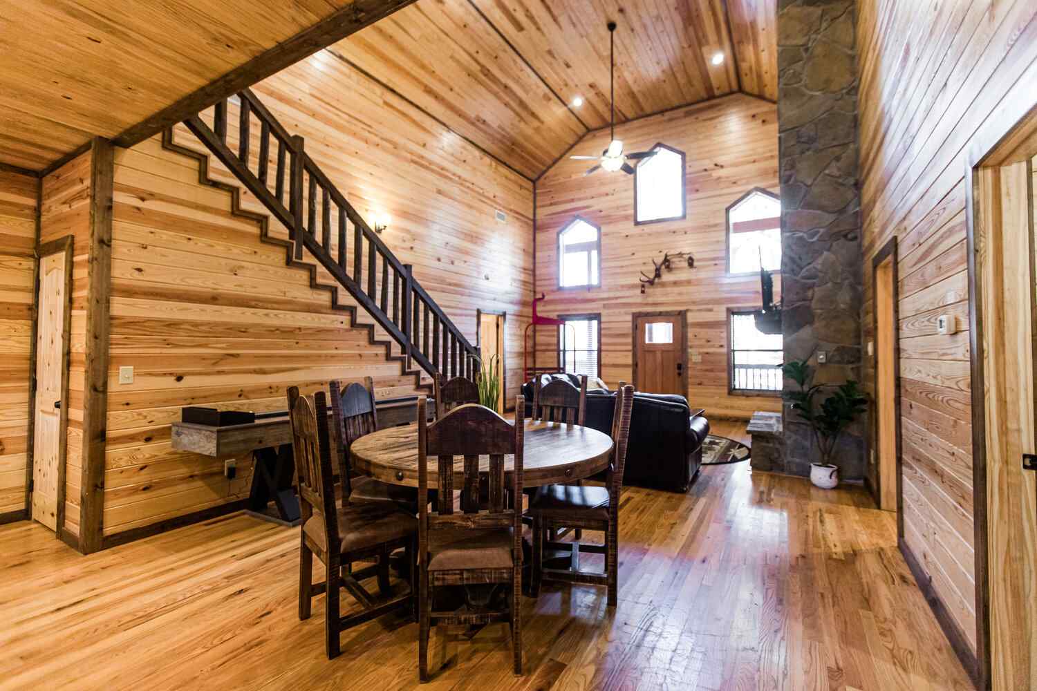 Step into a world of serenity and tranquility at this stunning three-bedroom cabin in Broken Bow. Perfect for up to 10 people, it boasts a spacious open floor plan comprising a King bedroom, two Queen bedrooms, and two twin bunks. Explore the loft, where you can take your pick from the range of games provided or curl up in one of the cozy bean bags to relax with a good book. Enjoy the soothing creek behind the cabin and the peacefulness of being nestled in the woods. With Beavers Bend State Park just a short drive away, you can explore the wonders of nature and admire its awe-inspiring beauty up close.