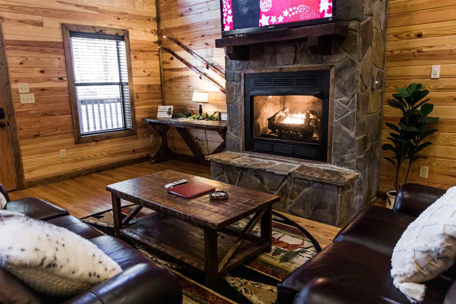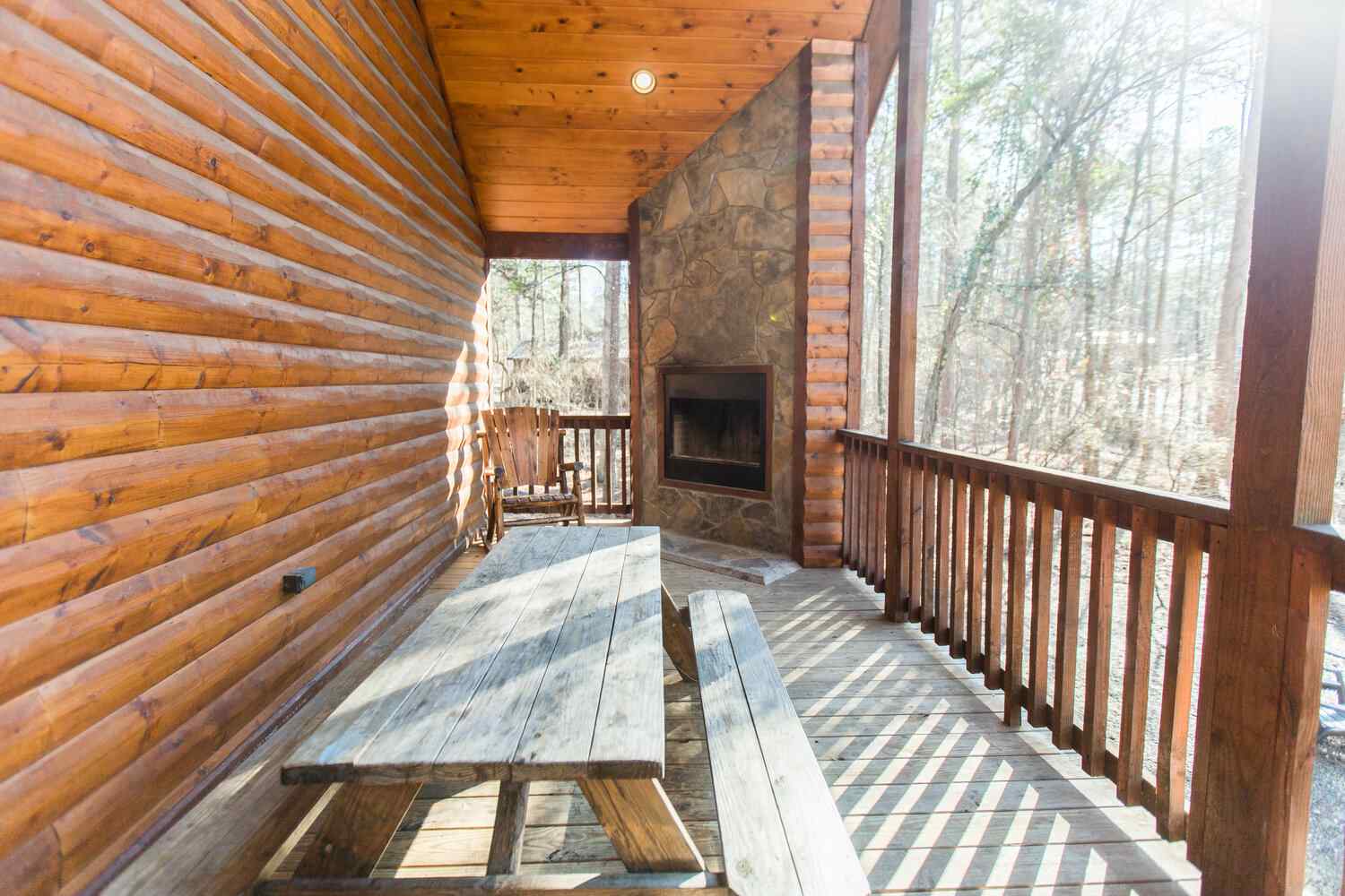 A fire pit area of the deck is a great place to gather with the kids to roast marshmallows and hot dogs. Guests can soak in the hot tub on the back deck while friends share stories and laughter around the outside fireplace. Enjoy a unique mountain experience that you will remember in a hurry!