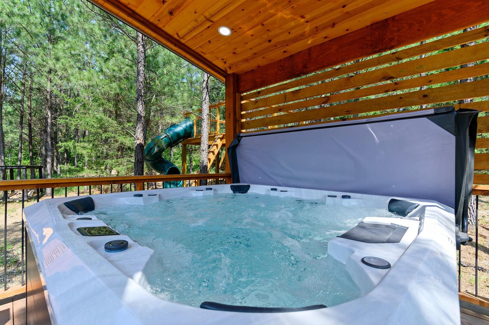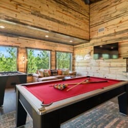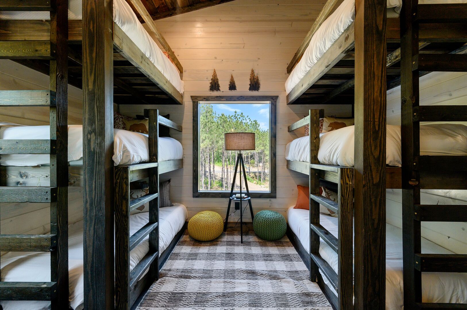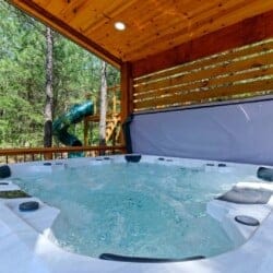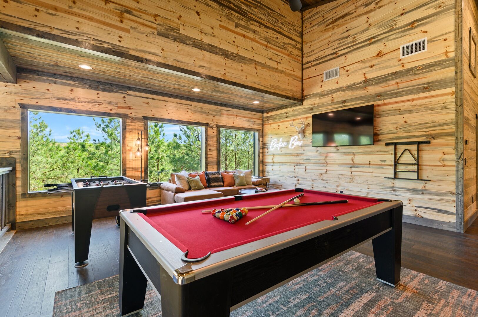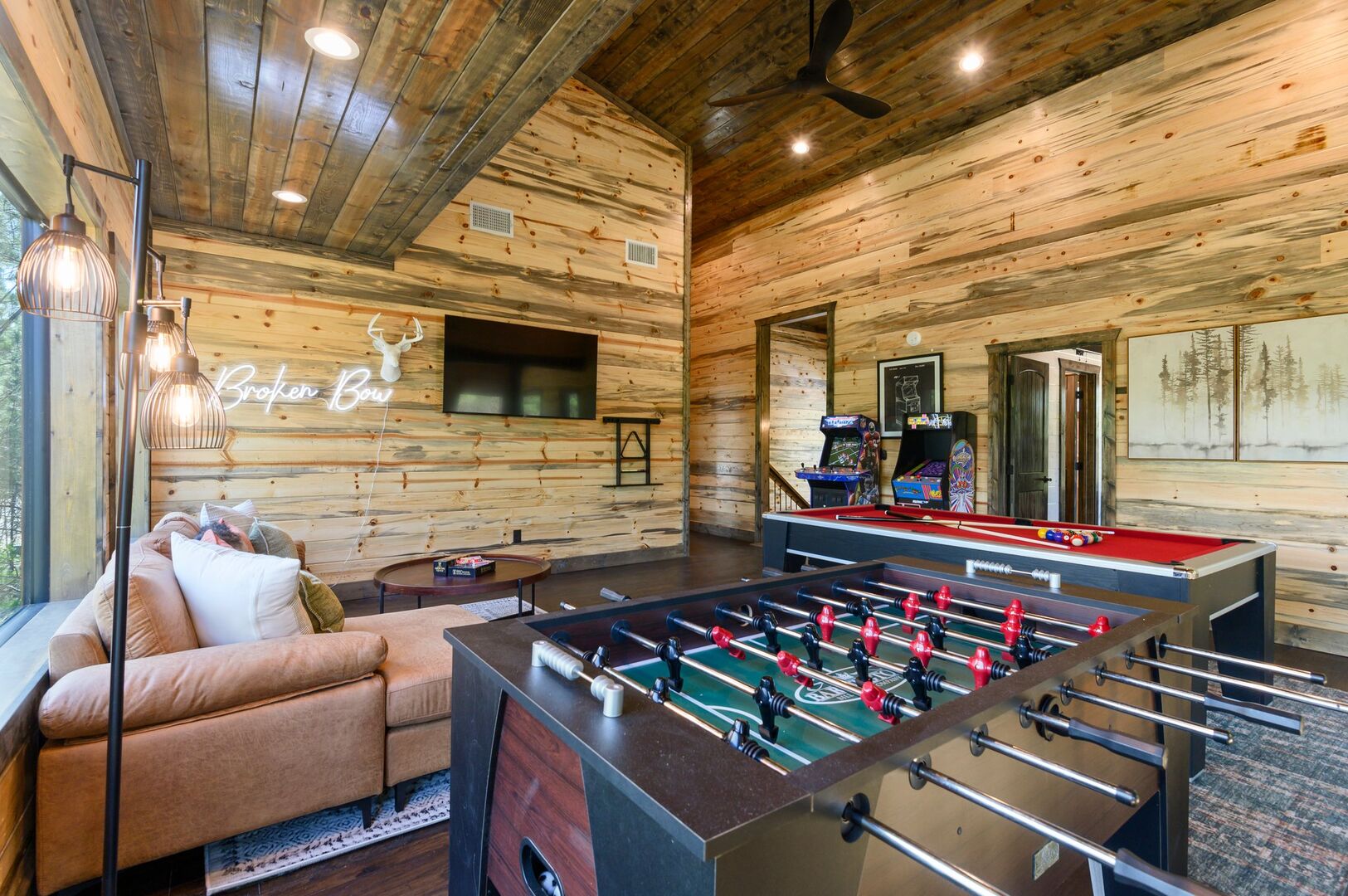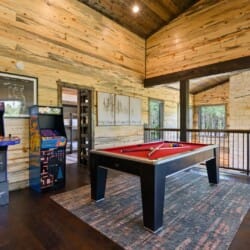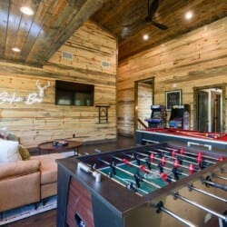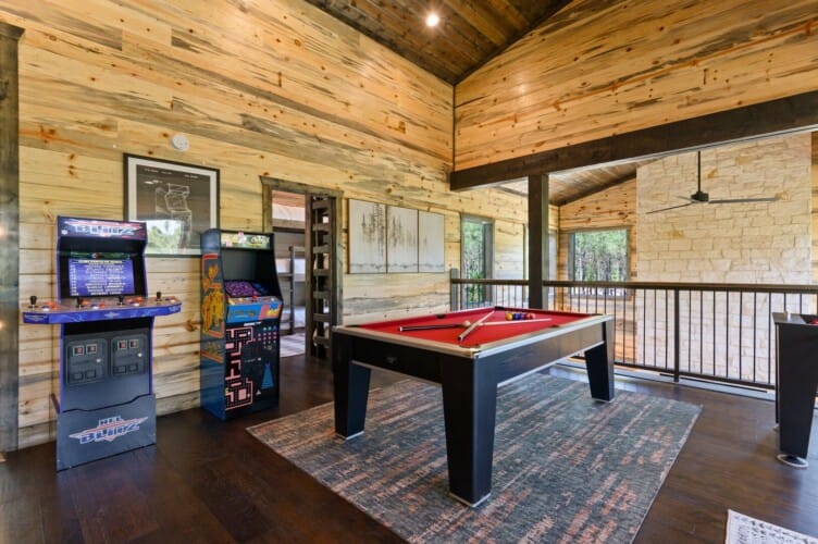 I can’t say enough about it we left wanting to buy the house! Kids had so much to do at the cabin we only ventured out twice. From the private pickleball/basketball court to the hot tub, corn hole games, slide, fire pit for smores and can’t forget the game room upstairs! It also had a horseshoe area but we couldn’t find the horseshoes that was a bummer. Cabin was so beautiful and very well equipped for all your needs away from home.