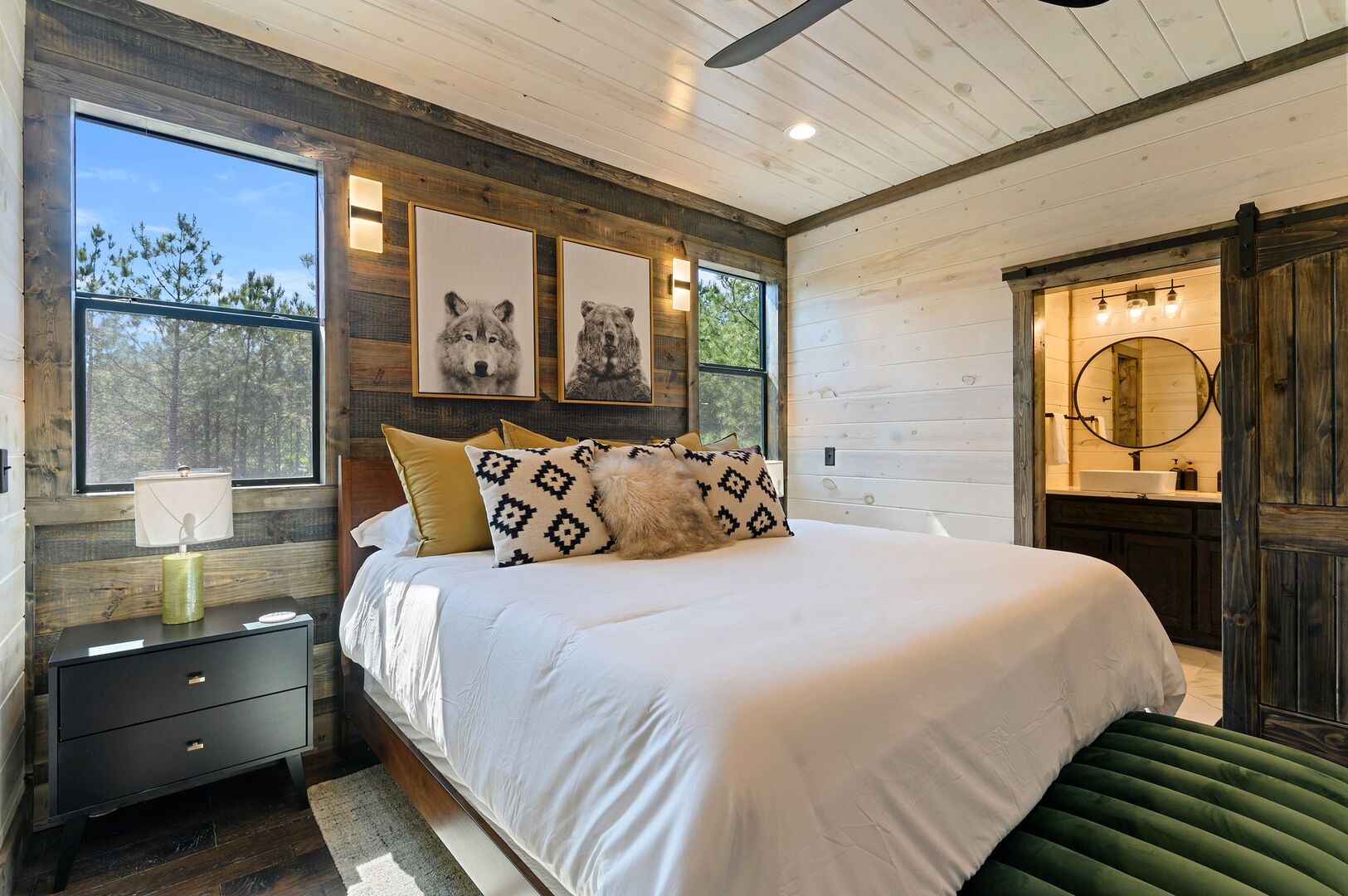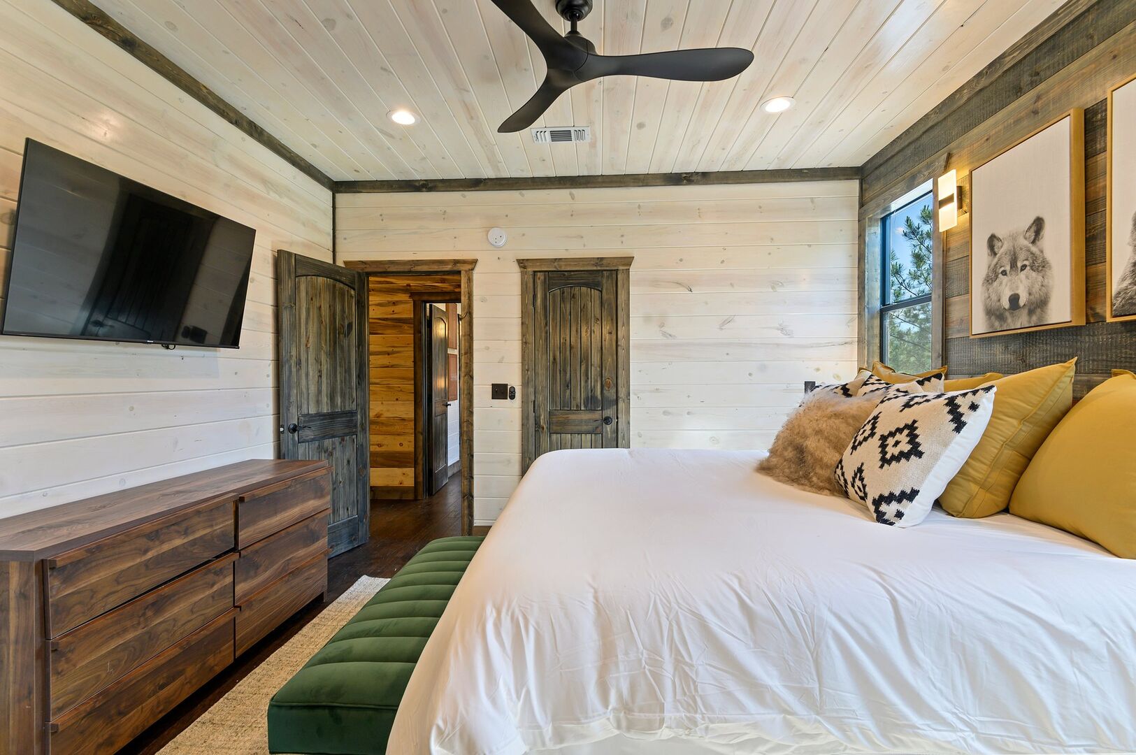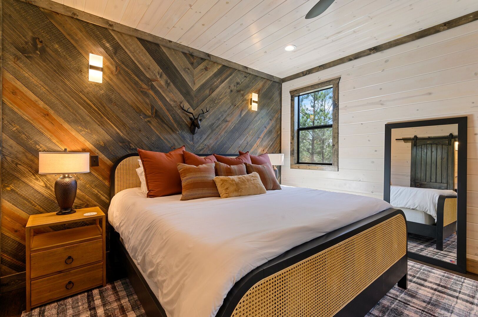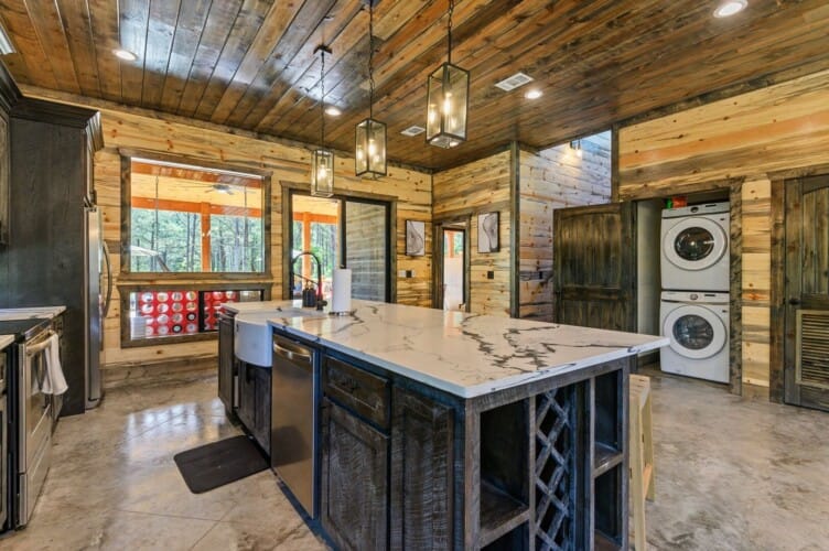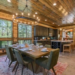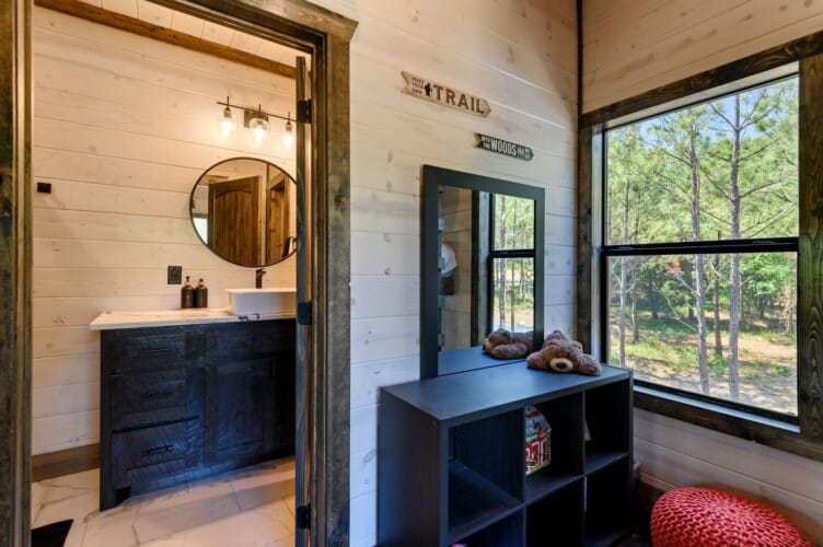 I can’t say enough about it we left wanting to buy the house! Kids had so much to do at the cabin we only ventured out twice. From the private pickleball/basketball court to the hot tub, corn hole games, slide, fire pit for smores and can’t forget the game room upstairs! It also had a horseshoe area but we couldn’t find the horseshoes that was a bummer. Cabin was so beautiful and very well equipped for all your needs away from home.