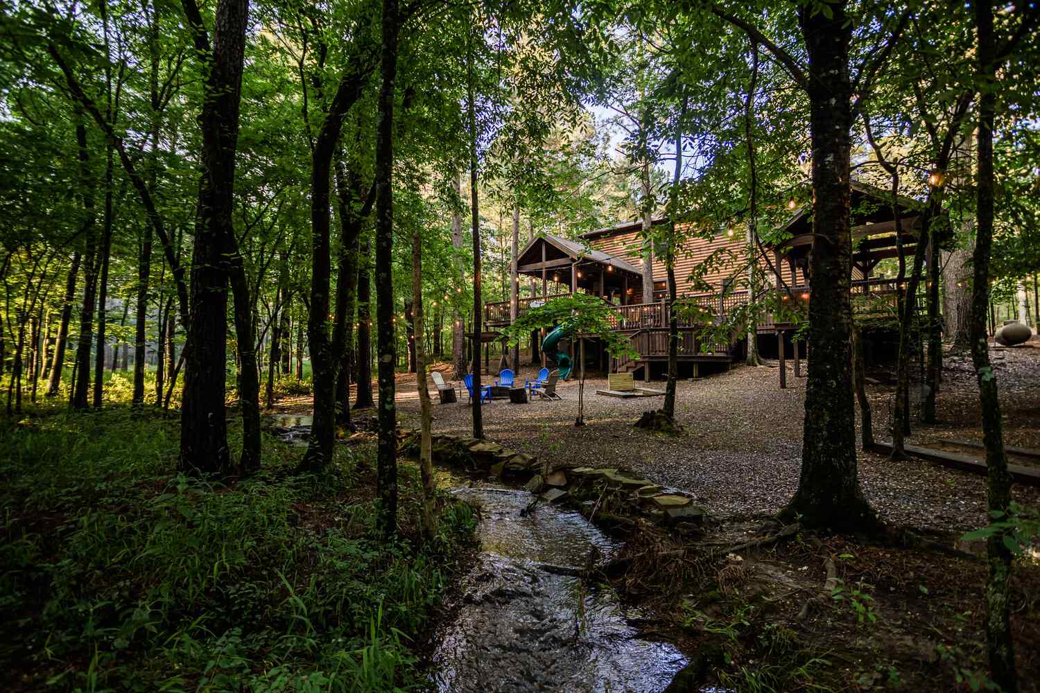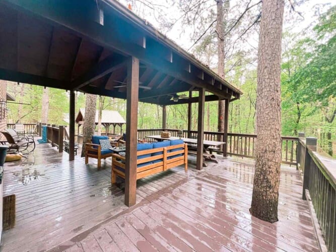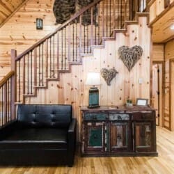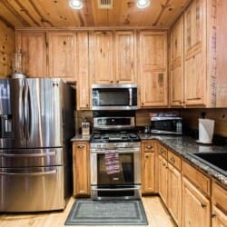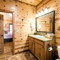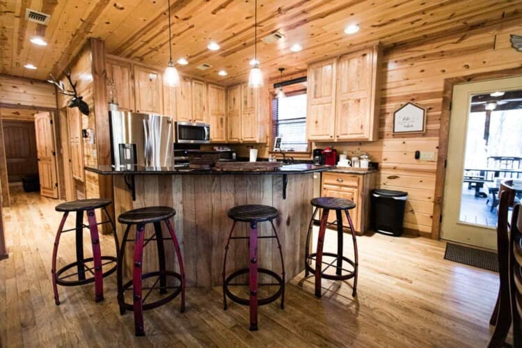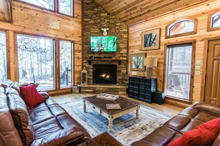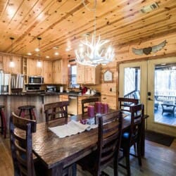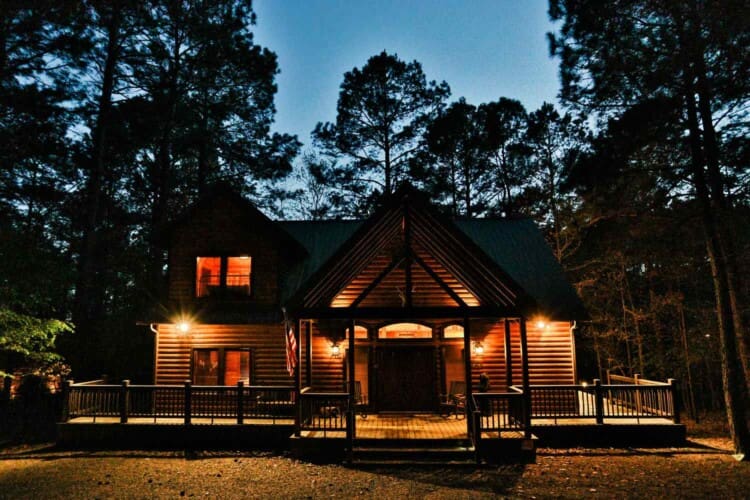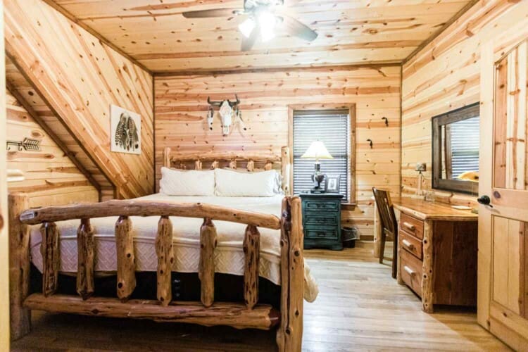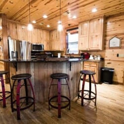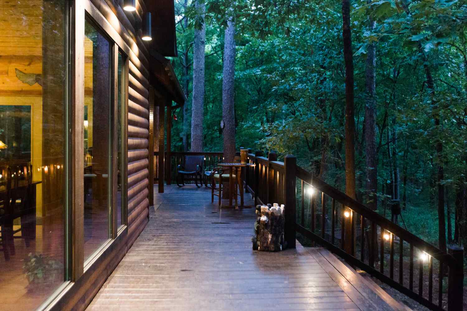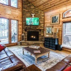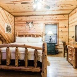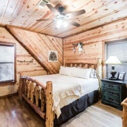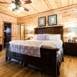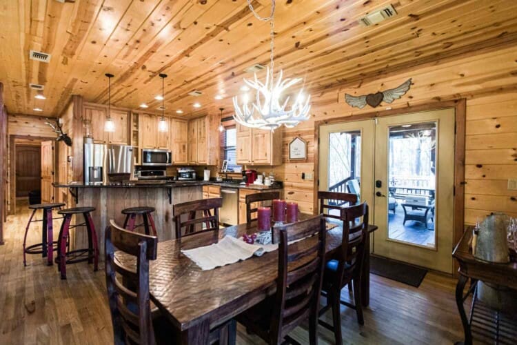 This luxurious one bedroom cabin in Broken Bow is the idyllic hideaway for a romantic getaway. The place features a chef’s kitchen with an extensive gas range and a convection oven. This will allow you to cook up a storm, should you stay in and dine. For larger gatherings, you can use the indoor and outdoor dining tables for 12 and dine amidst nature’s bounty.