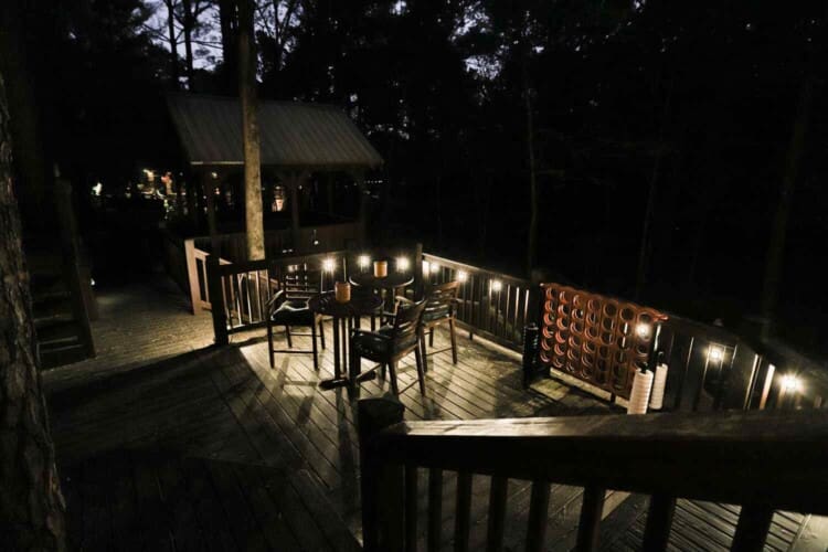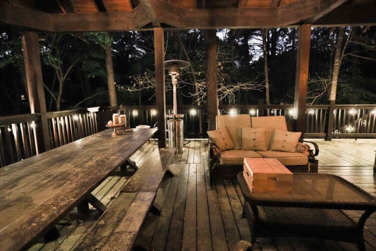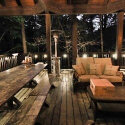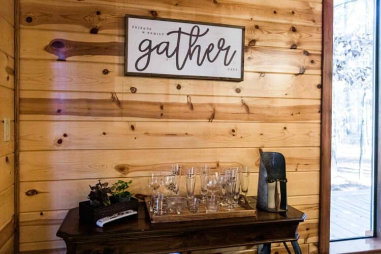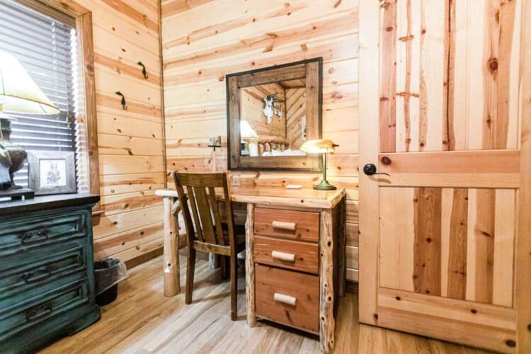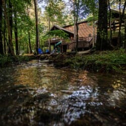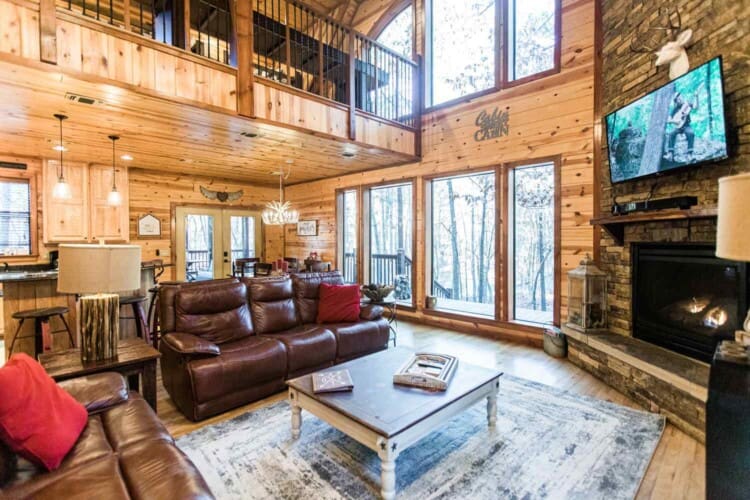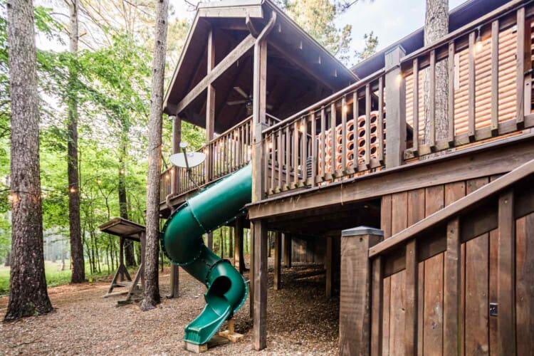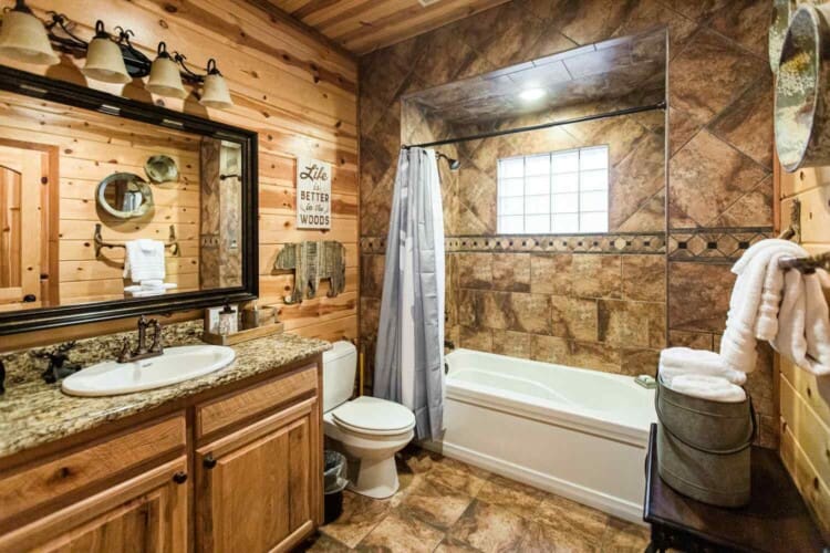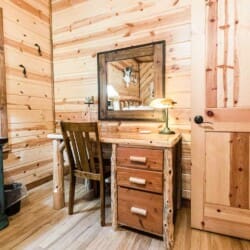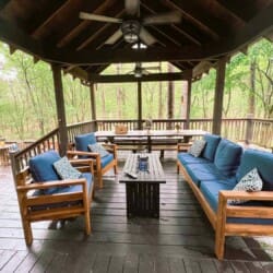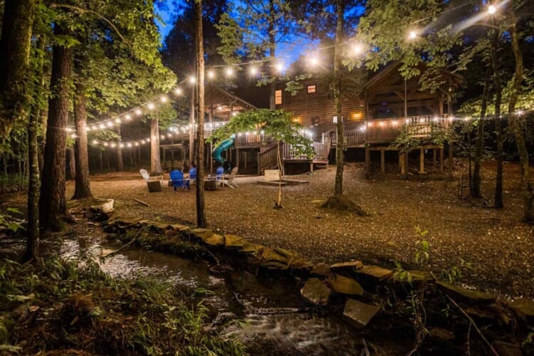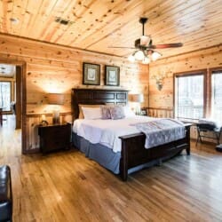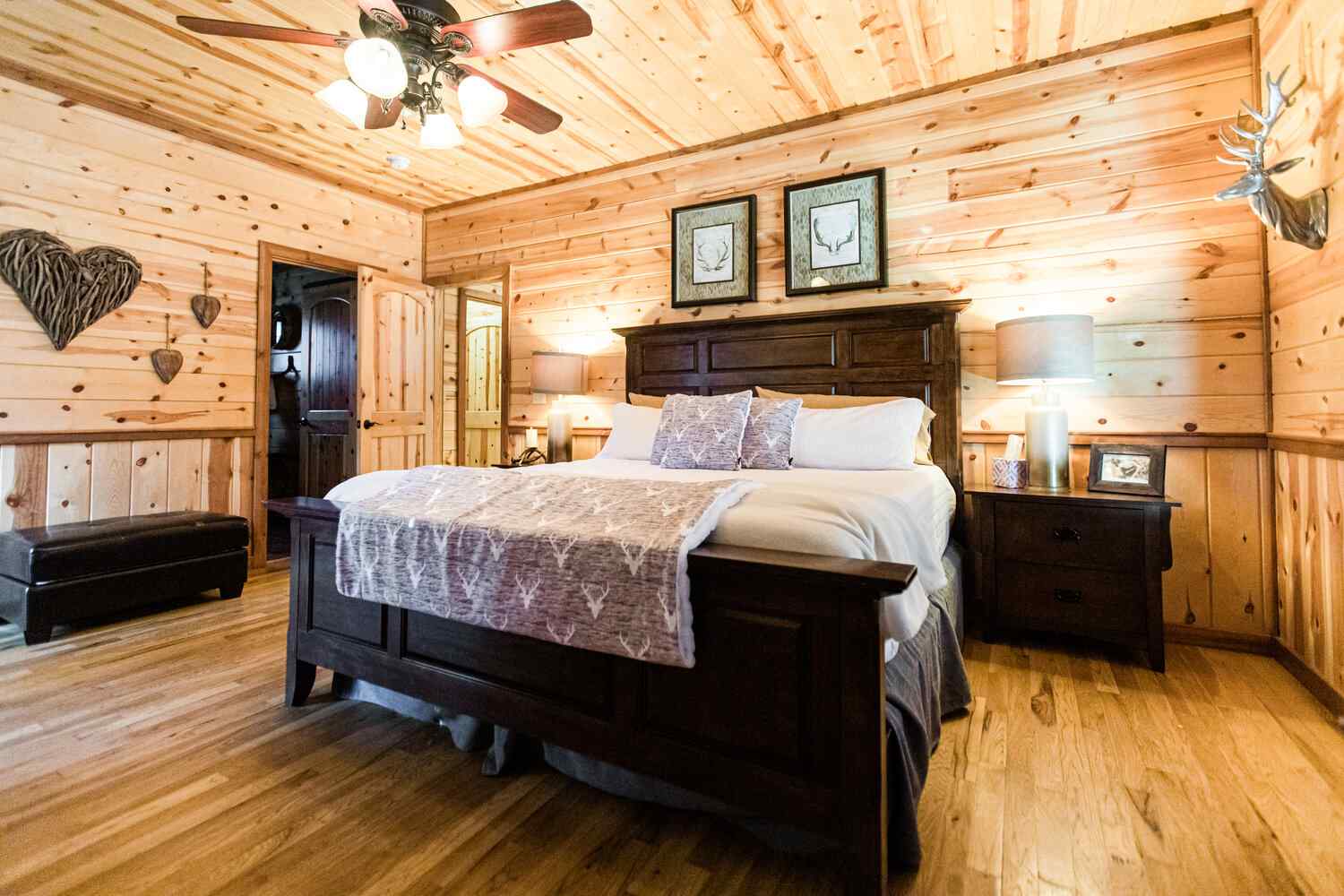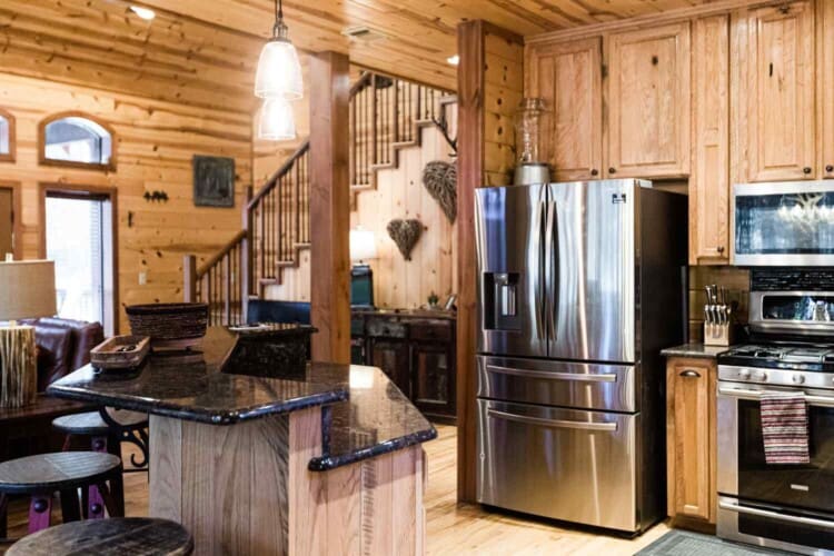 This luxurious one bedroom cabin in Broken Bow is the idyllic hideaway for a romantic getaway. The place features a chef’s kitchen with an extensive gas range and a convection oven. This will allow you to cook up a storm, should you stay in and dine. For larger gatherings, you can use the indoor and outdoor dining tables for 12 and dine amidst nature’s bounty.