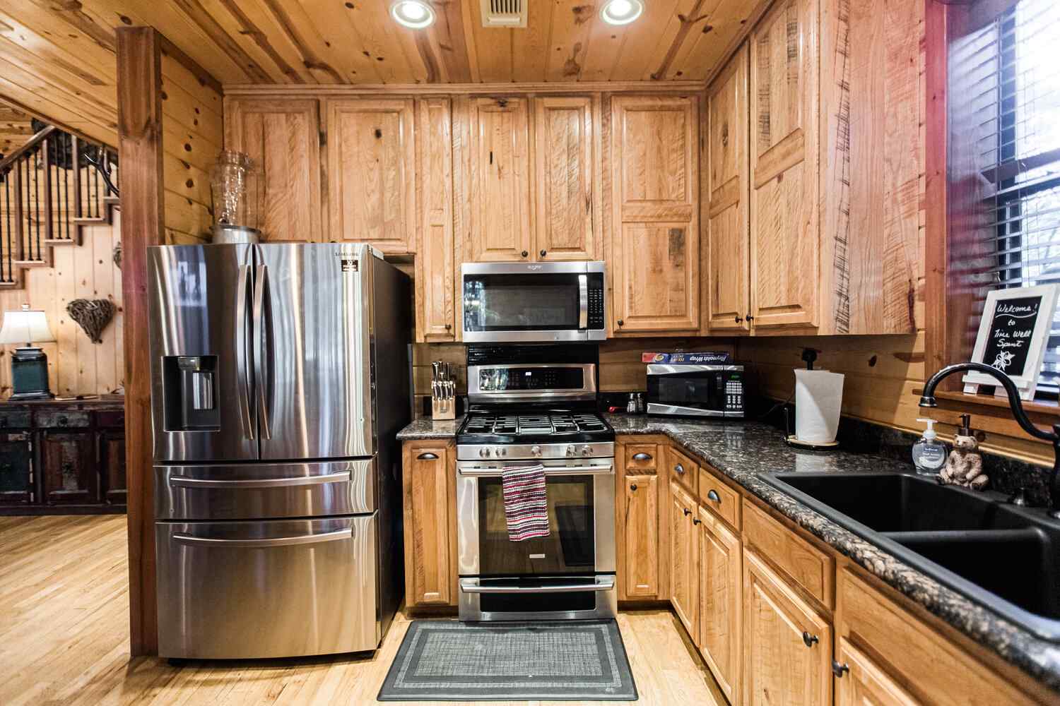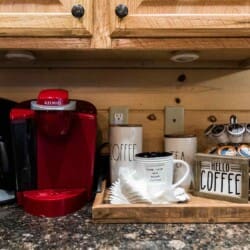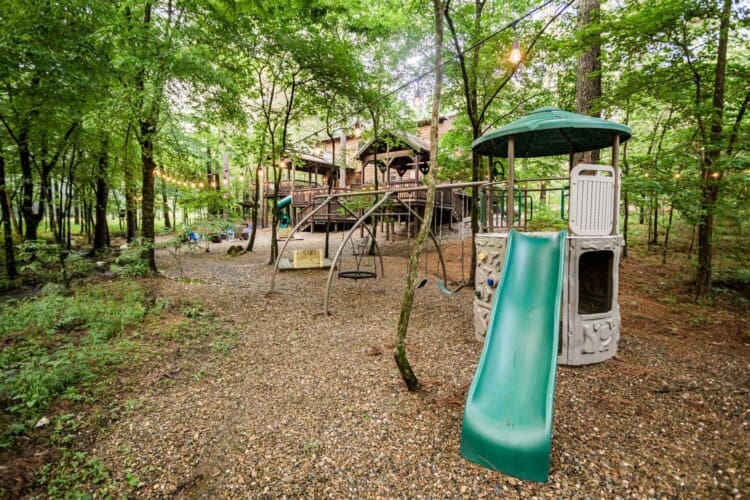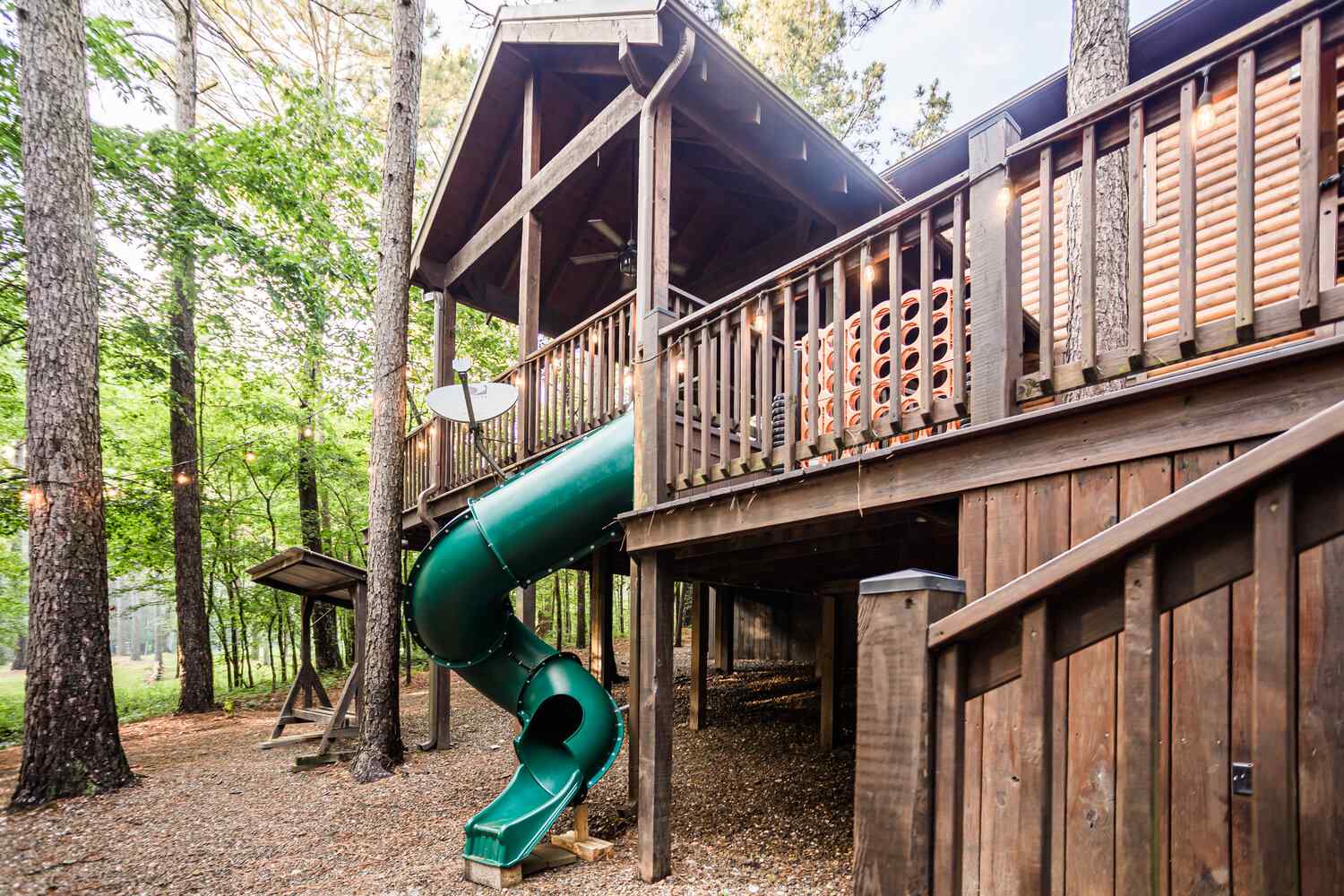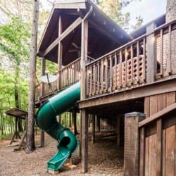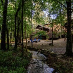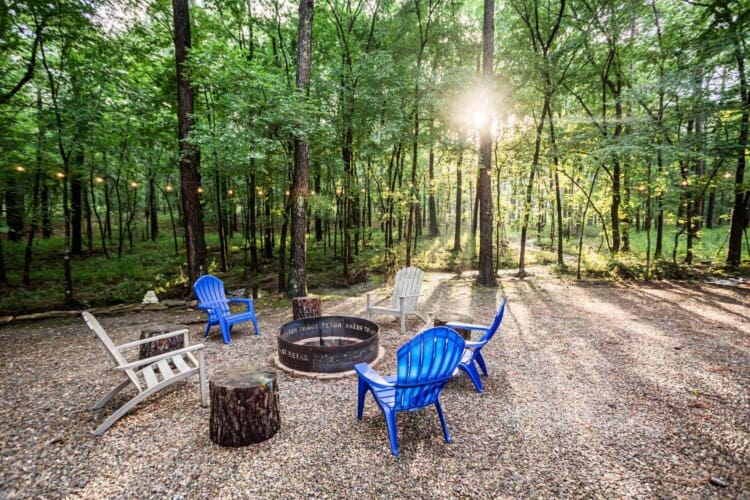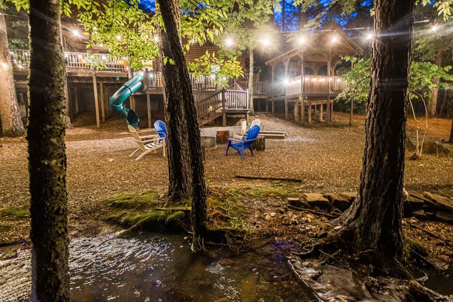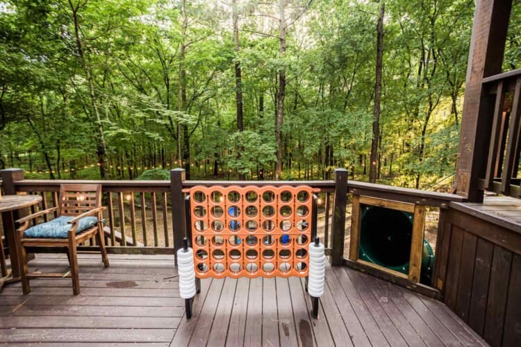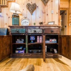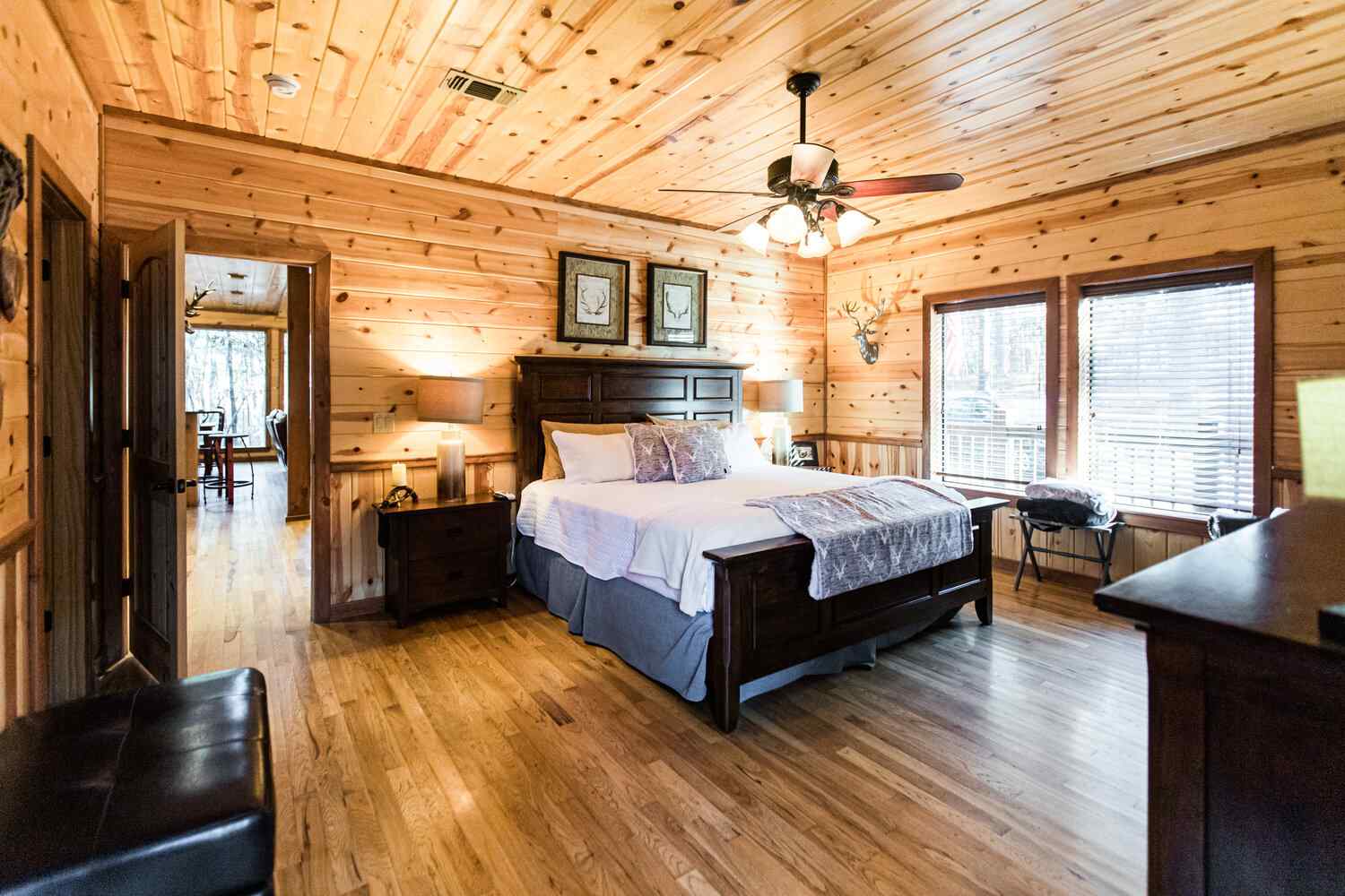 Enjoy the fresh air while nestled among towering, lush pines, and take in the sights of the wildlife around you. Backing up to the Hochatown area, there are plenty of outdoor activities to take part in and amenities like grocery stores, restaurants, and more to enjoy. The cabin has three king bedrooms, two twin bunks, and a twin sofa chair in the loft to fit five guests comfortably, with an additional twin sofa chair in the living area and two full-sized air beds. Embrace a proper break from reality, and come camp with us!