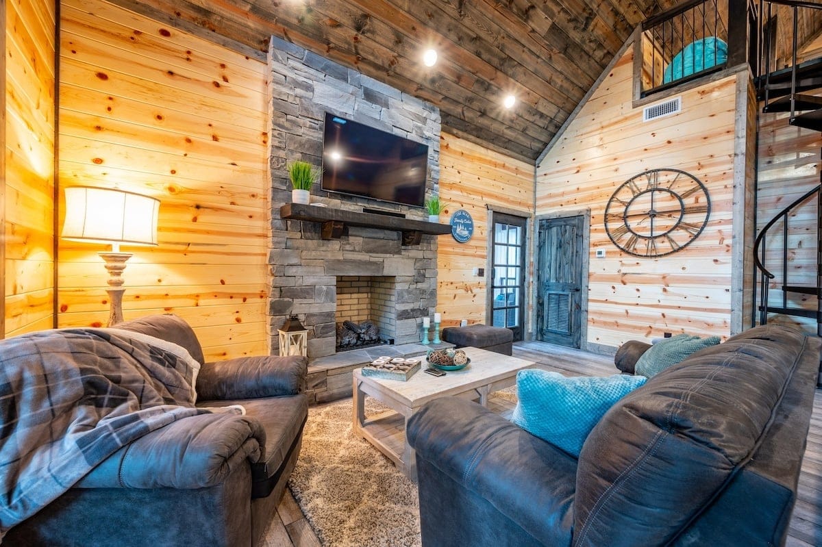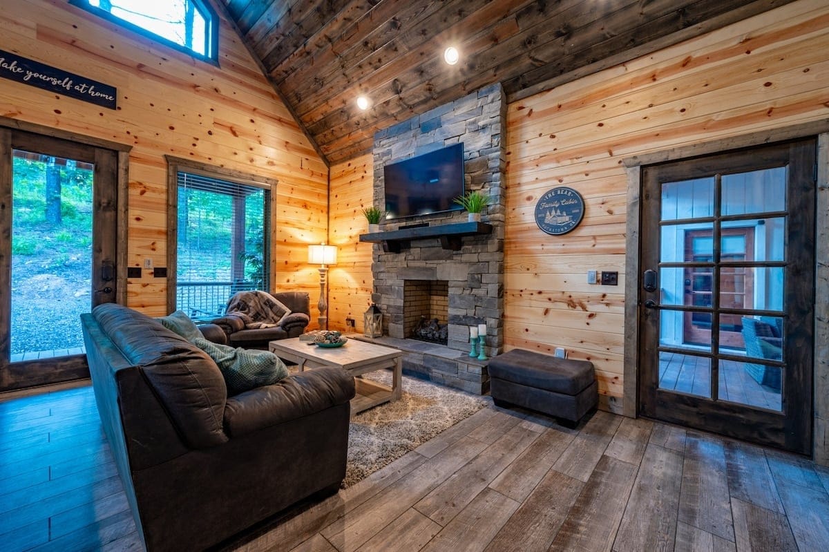 Toasted Marshmallow is the kind of cabin that makes you feel at home the moment you pull into the driveway. Tucked away on more than an acre of peaceful wooded land, Toasted Marshmallow blends rustic charm with modern comforts, offering everything you need for a laid-back, family-friendly getaway. Whether you’re coming with a group of friends, several couples, or the whole family, this cabin is designed to bring people together while still providing each individual with their own space to unwind. With three private king suites, a fun bunk loft for kids, and plenty of room to relax both indoors and out, it’s the perfect place to escape into the beauty of