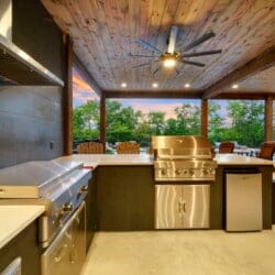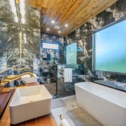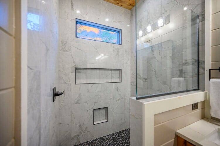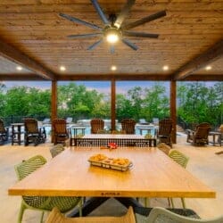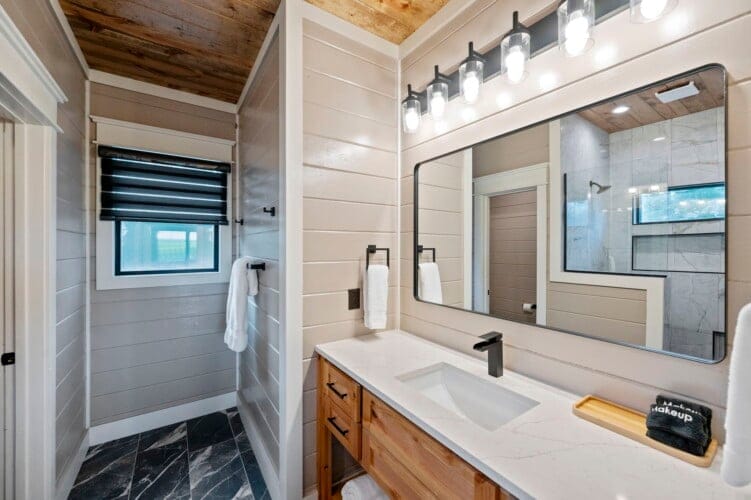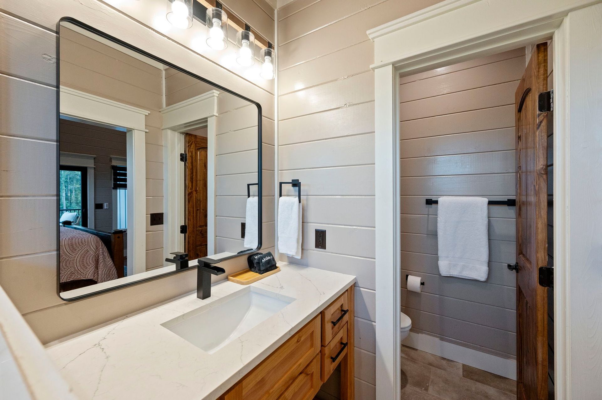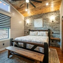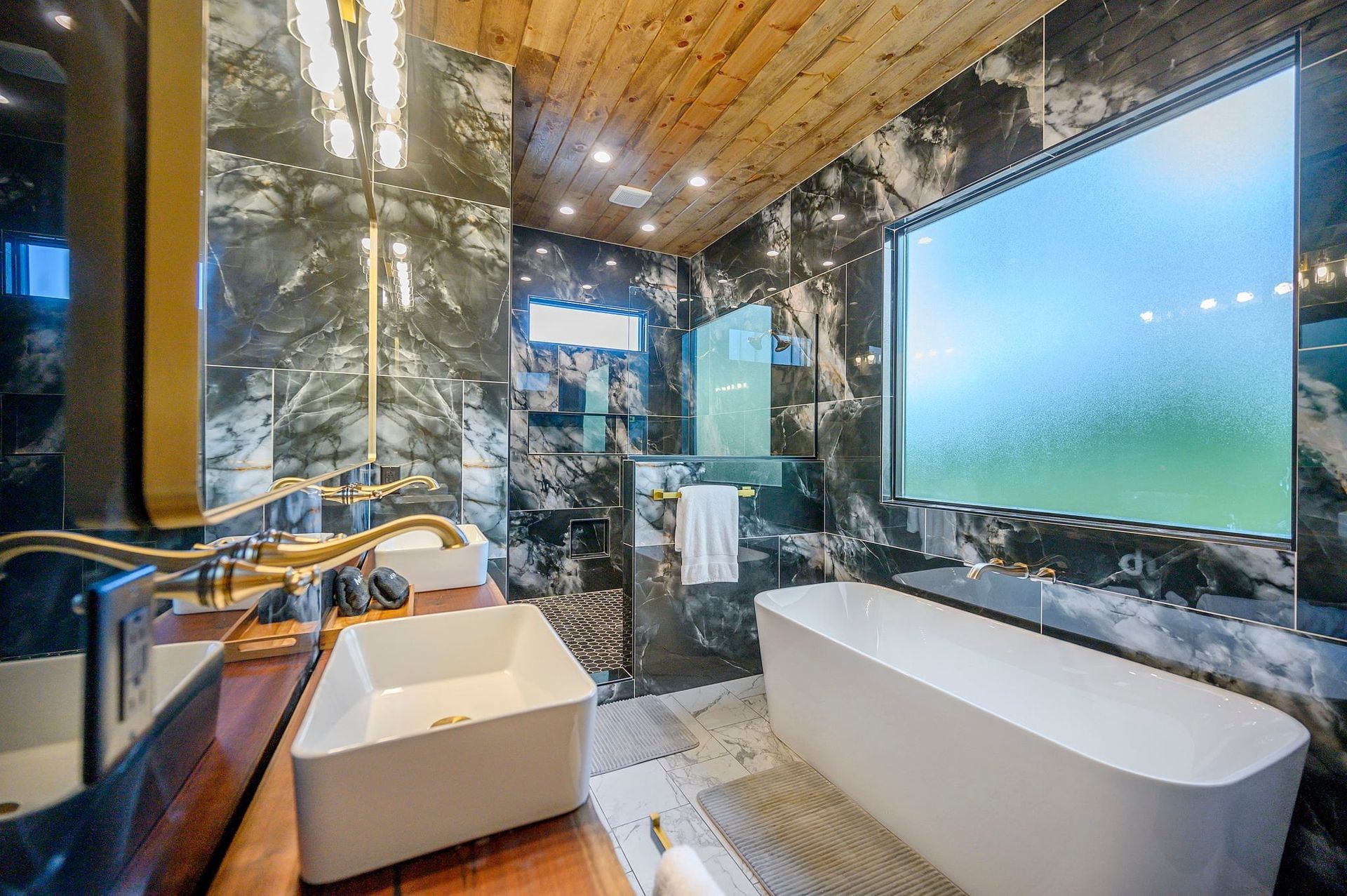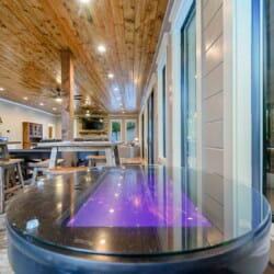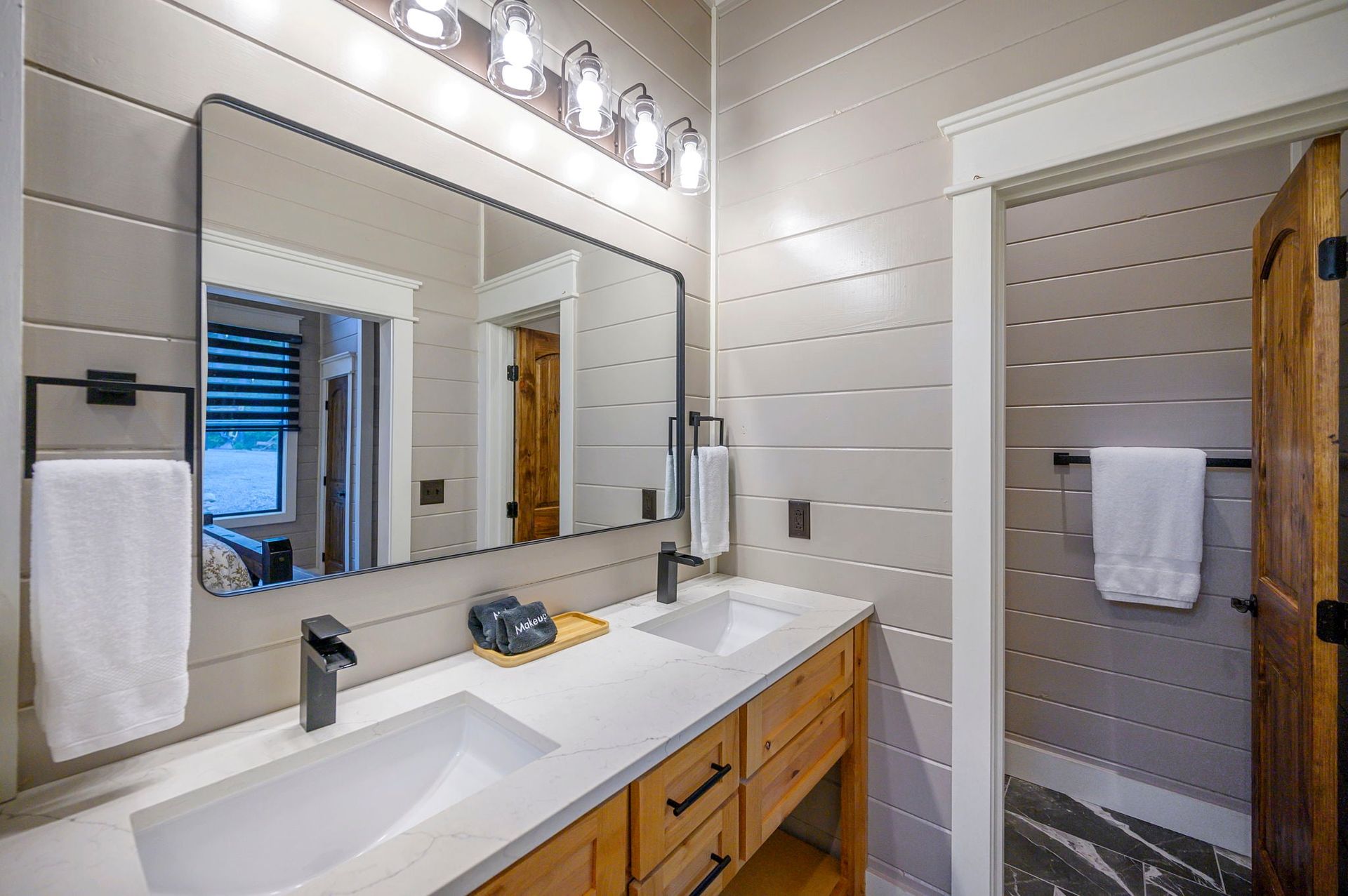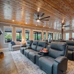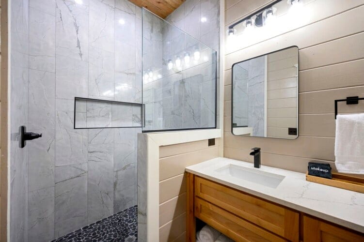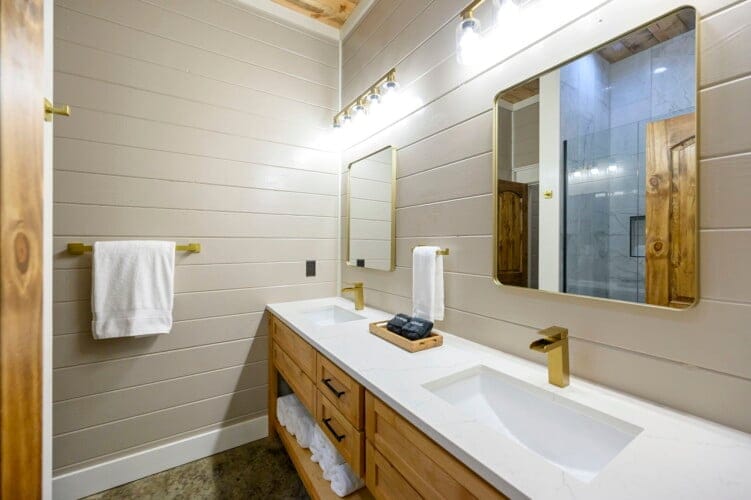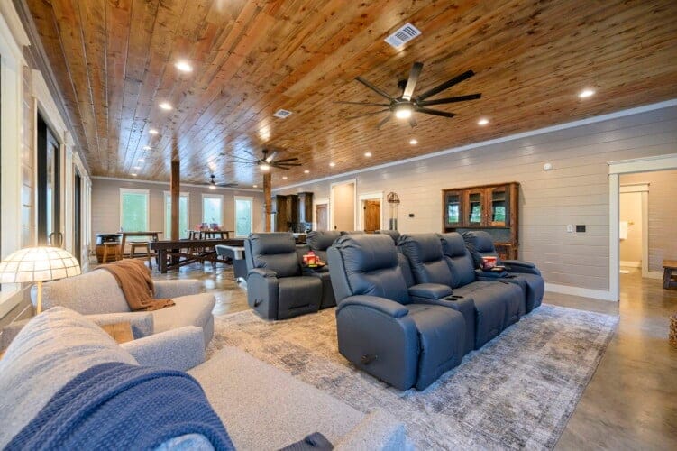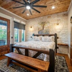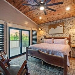 When it’s time to rest, Whiskey Trip delivers luxury and privacy in every suite. The main floor features four king suites, each equipped with a smart TV, nightstands, and an en-suite bathroom with a walk-in shower and vanities. The second floor features two additional king suites with private balconies—ideal for savoring morning coffee with a stunning view. Downstairs, the bunk rooms turn sleepovers into lasting memories, with one room featuring queen bunks that sleep 12 and another with twin bunks for six. Each room features its own bathroom and TV, providing each guest with their own private corner of comfort.