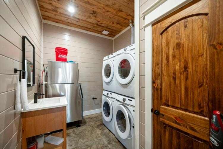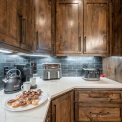 Culinary enthusiasts will feel right at home at Whiskey Trip. The main kitchen is designed for group cooking and large feasts, featuring an industrial-size refrigerator, double ovens, and a gas stovetop that can handle any menu. The dining table seats everyone comfortably, and additional bar seating at the kitchen island ensures that cooking becomes a social event, not a chore. Every meal feels like an occasion, whether it’s a big family breakfast or a late-night snack raid.