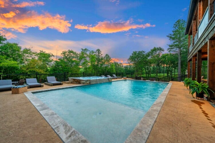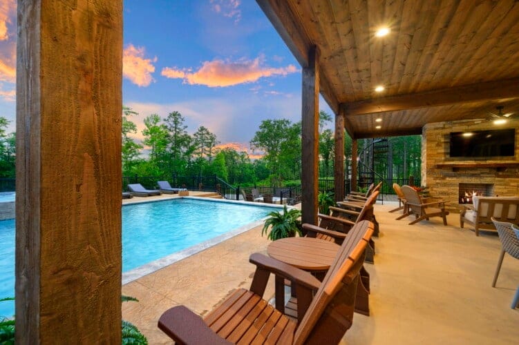 Nothing says vacation like the pool area at Whiskey Trip. The private swimming pool glimmers under the Oklahoma sky, surrounded by sun loungers that invite lazy afternoons and laughter. A built-in hot tub adds another layer of relaxation, perfect for unwinding after a day of hiking, kayaking, or exploring Beavers Bend State Park. From morning swims to starlit dips, the pool area is a centerpiece of both serenity and fun.