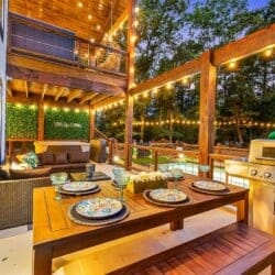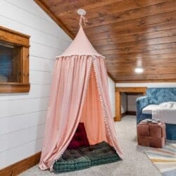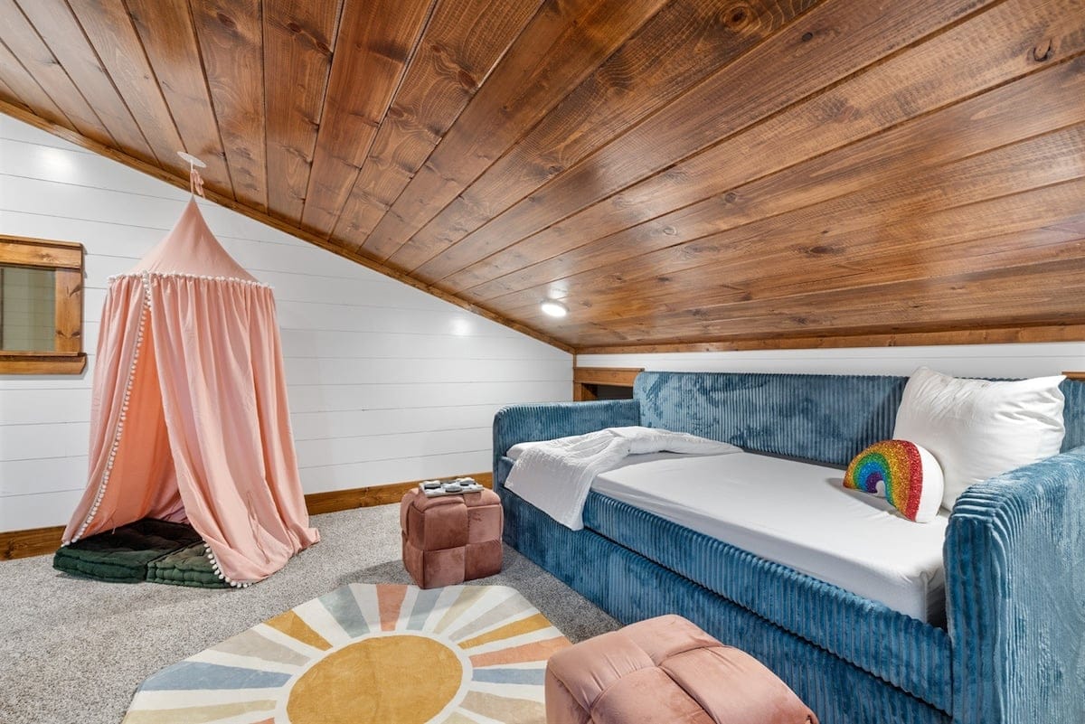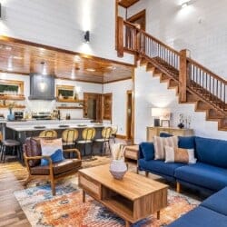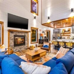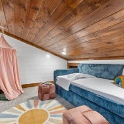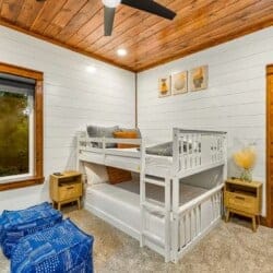Retreat to the sleeping quarters, where two king suites, a full-on-full bunk room, and a loft with a twin daybed trundle provide plush accommodations for up to 8 guests. Each bedroom promises premium amenities, including smart TVs, premium pillows, and ensuite bathrooms.