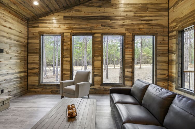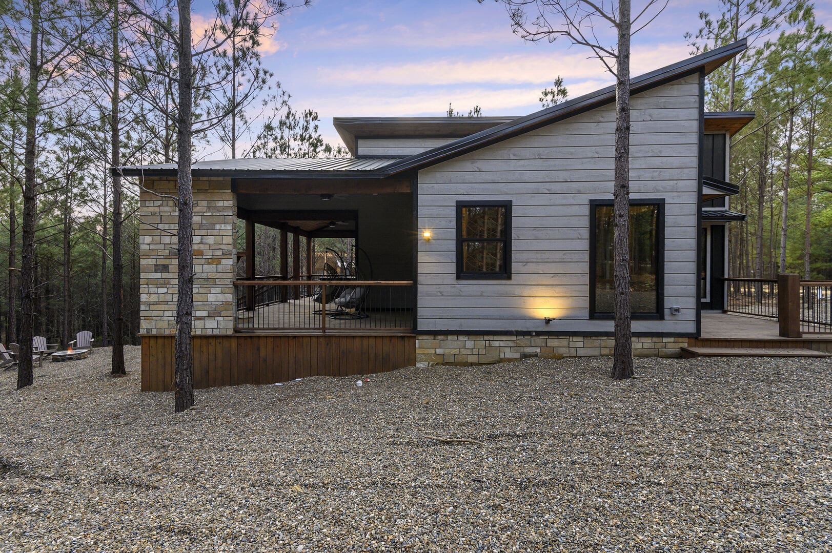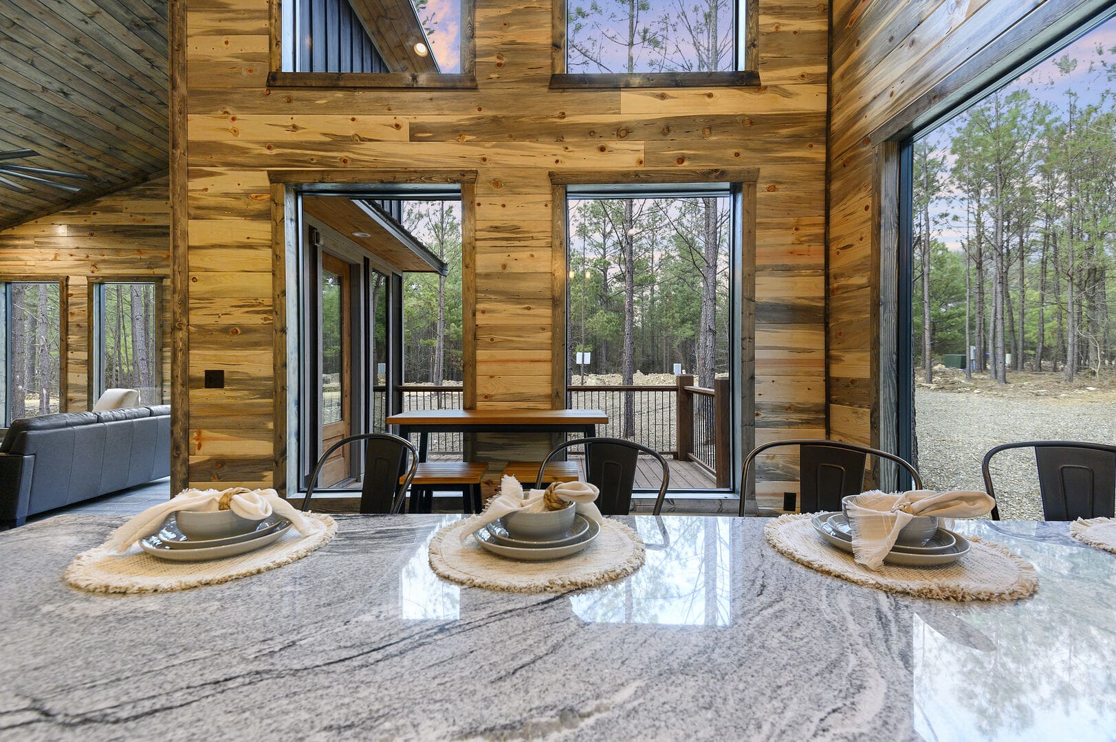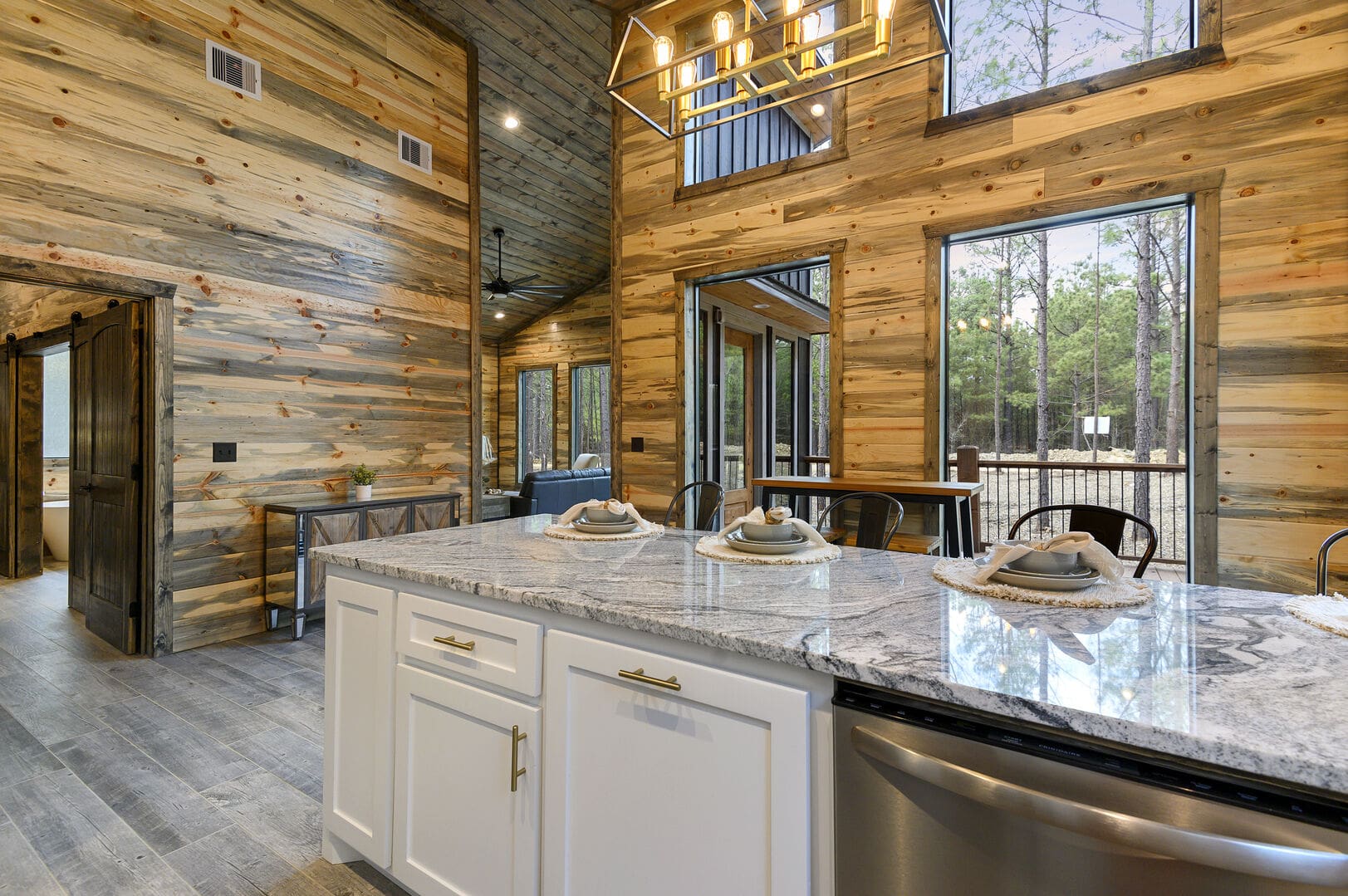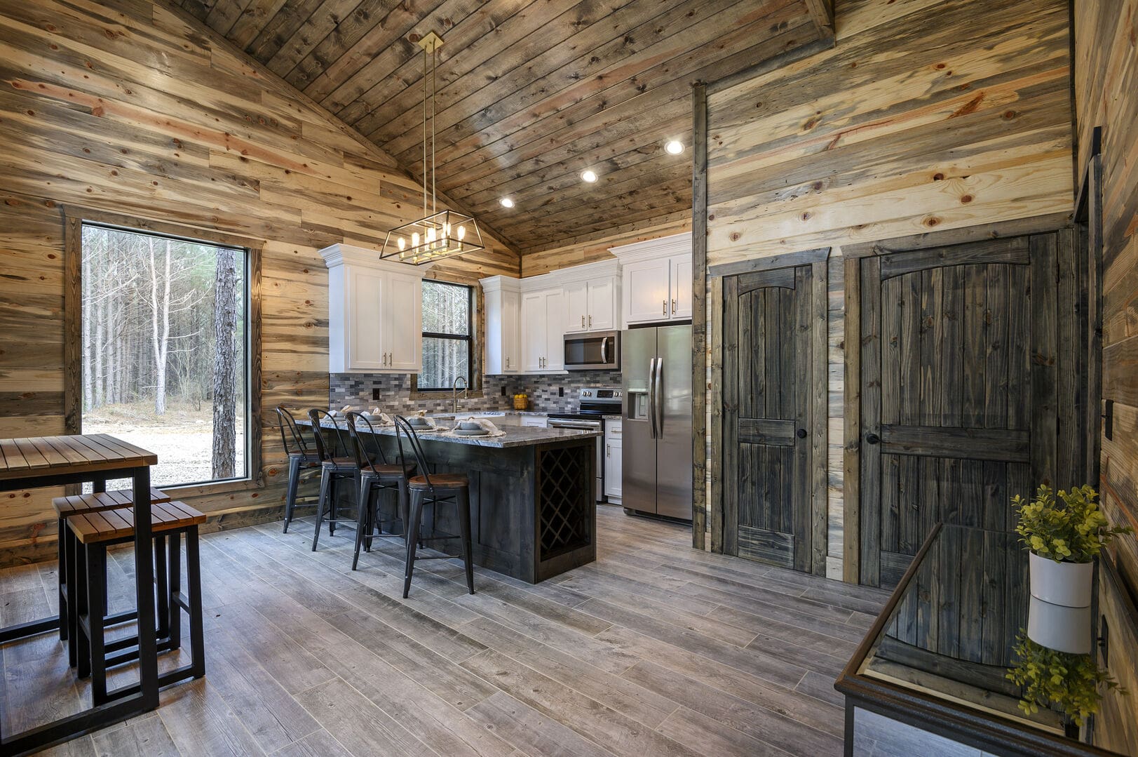 Imagine a romantic retreat at Whole Lotta Love cabin in Broken Bow. This intimate single-bedroom cabin is nestled amidst towering pine trees, ensuring a serene and private escape for you and your special someone. The full-service kitchen caters to your culinary desires and has all the necessary appliances. Bask in the natural light of the dining area as you savor your meals. The living room invites you to unwind with a leather sofa, two additional chairs, a gas fireplace, and a big-screen HDTV, setting the stage for cozy movie nights.